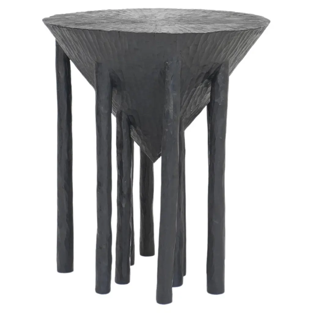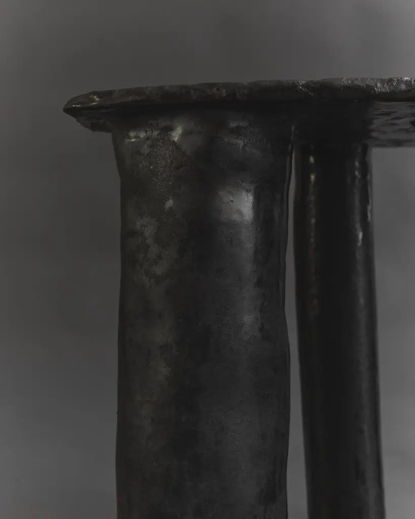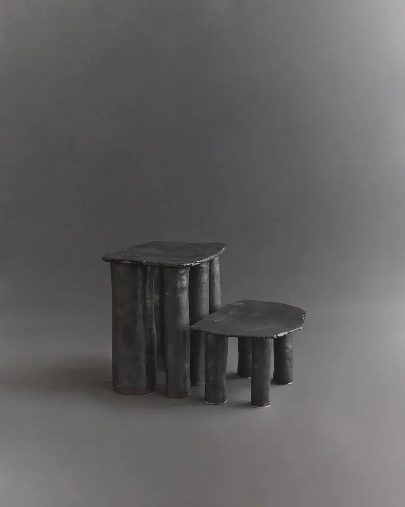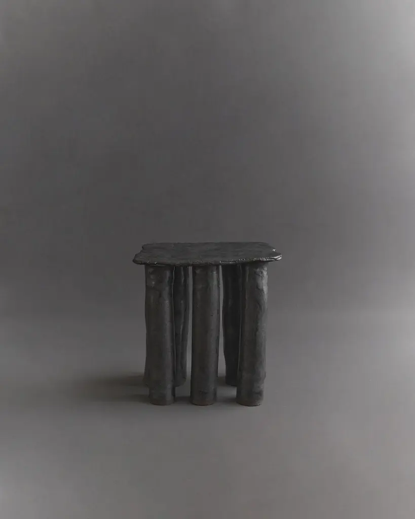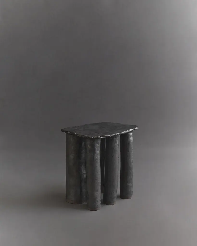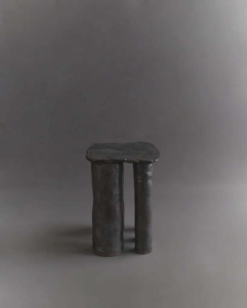 Cleo clay side table by OmbiaDimensions: W 42 x D 33 x H 43.5 cmMaterials: Clay, textured black glaze. Custom colors upon request.Ombia is a ceramic sculpture and design studio based in Los Angeles. The name and its roots originates from Colombia, where designer and founder Cristina Moreno comes from. She hand sculpts every piece, inspired by the dedicated artisans and craftsmanship of her country. Each piece holds a unique expression that inspires the everyday.Cristina's approach to furniture design is centered around celebrating the organic and imperfect, creating pieces that embody the beauty of handcrafted design. Each piece is carefully made by hand, imbuing it with a unique character and warmth. Ombia embodies texture, unconventional forms, proportions and attention to detail. Inspired to give a moment of pause, these creations will elevate and provide sanctuary to the home.