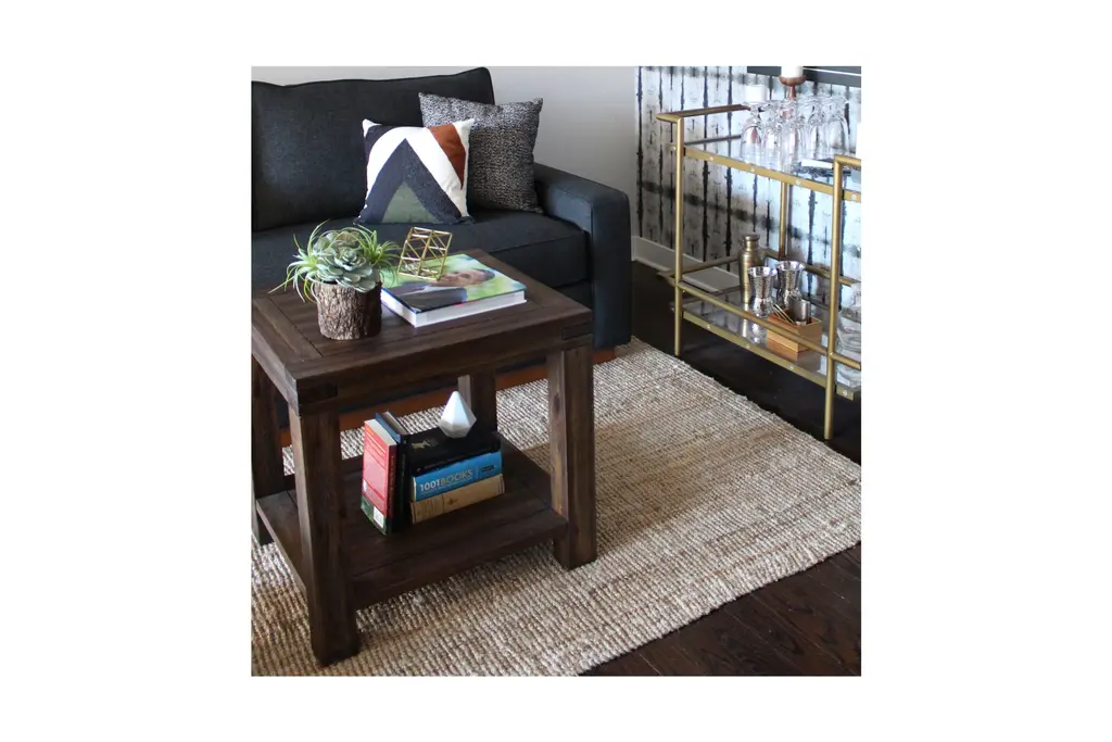 The Clifton Collection has a simple rustic charm to it, with solid Acacia wood and a sleek design. This piece features naturally occurring knot, grain, and color variants in the wood, with rustic wire brushing and a handsome Graphite or glazed Brick Brown finish.