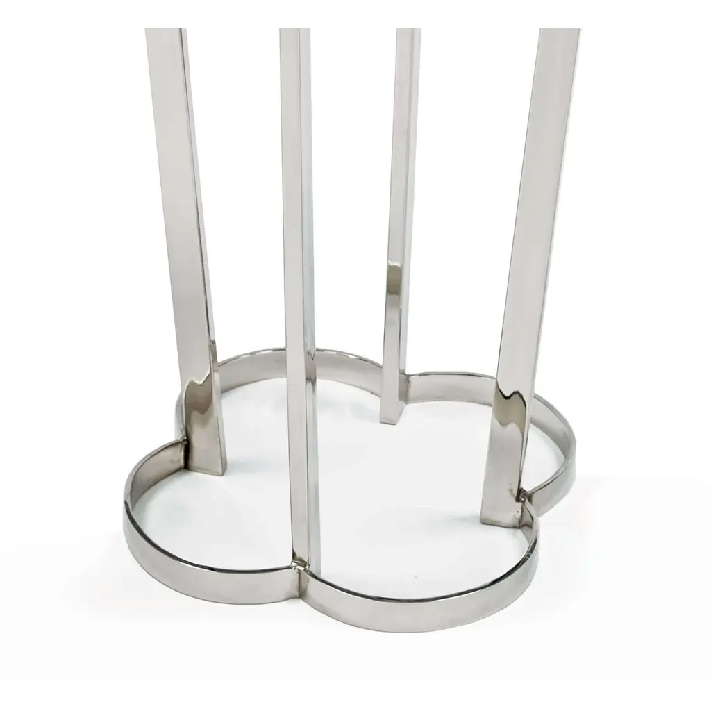Full of charm and modern appeal, this clover-shaped steel side table combines a polished nickel finish and a creamy white marble top, making it a glamorous addition to any room.