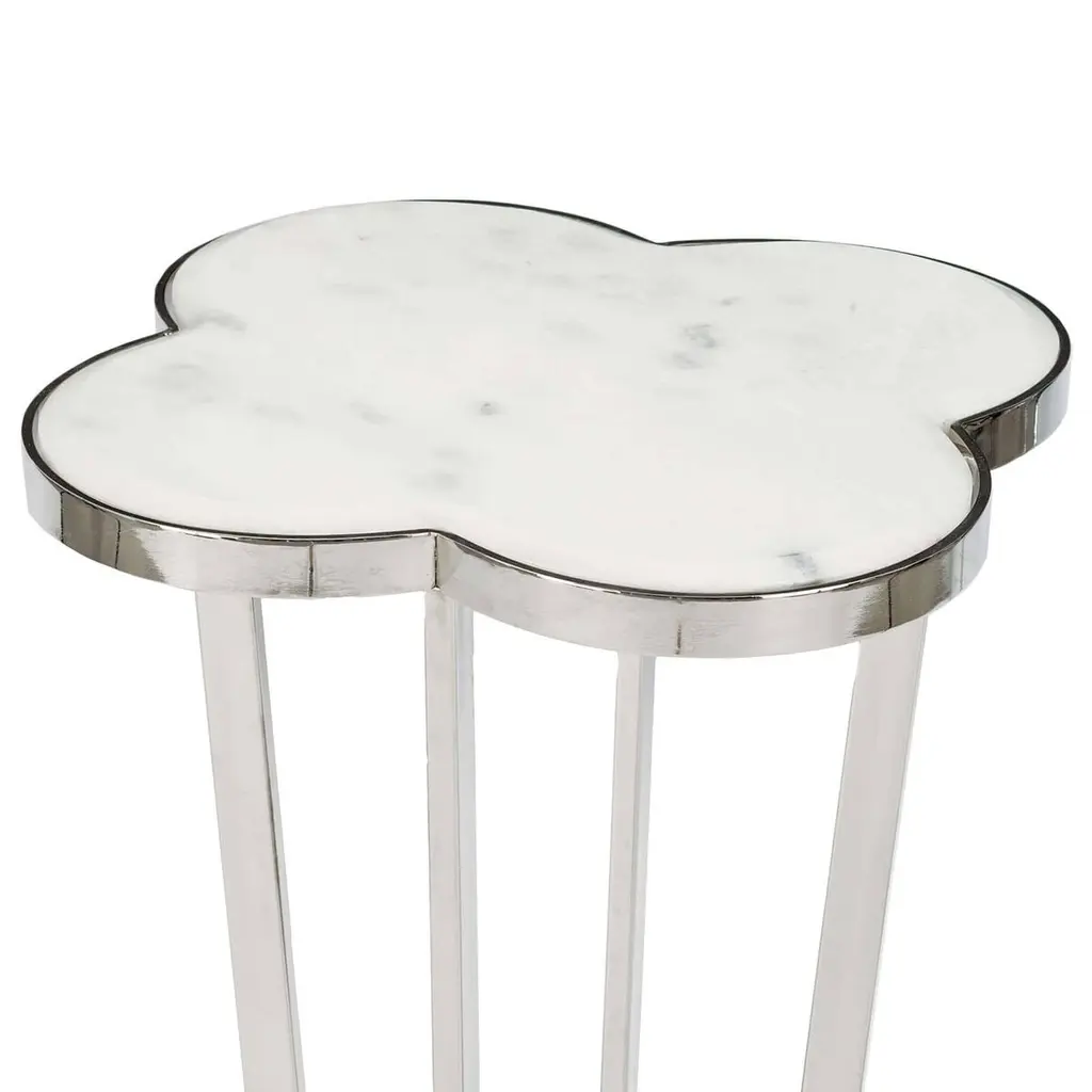 Full of charm and modern appeal, this clover-shaped steel side table combines a lustrous finish and creamy white marble top, making it a stylish addition to any room.
