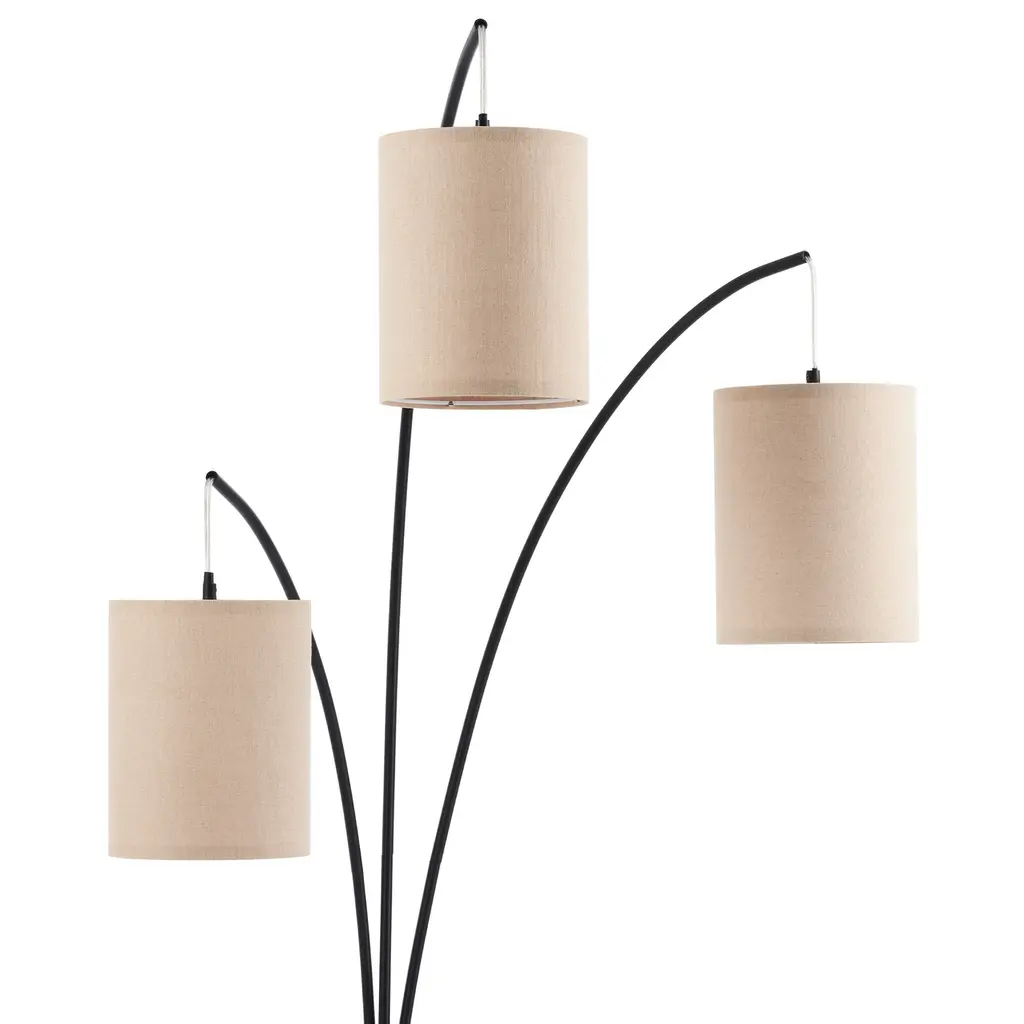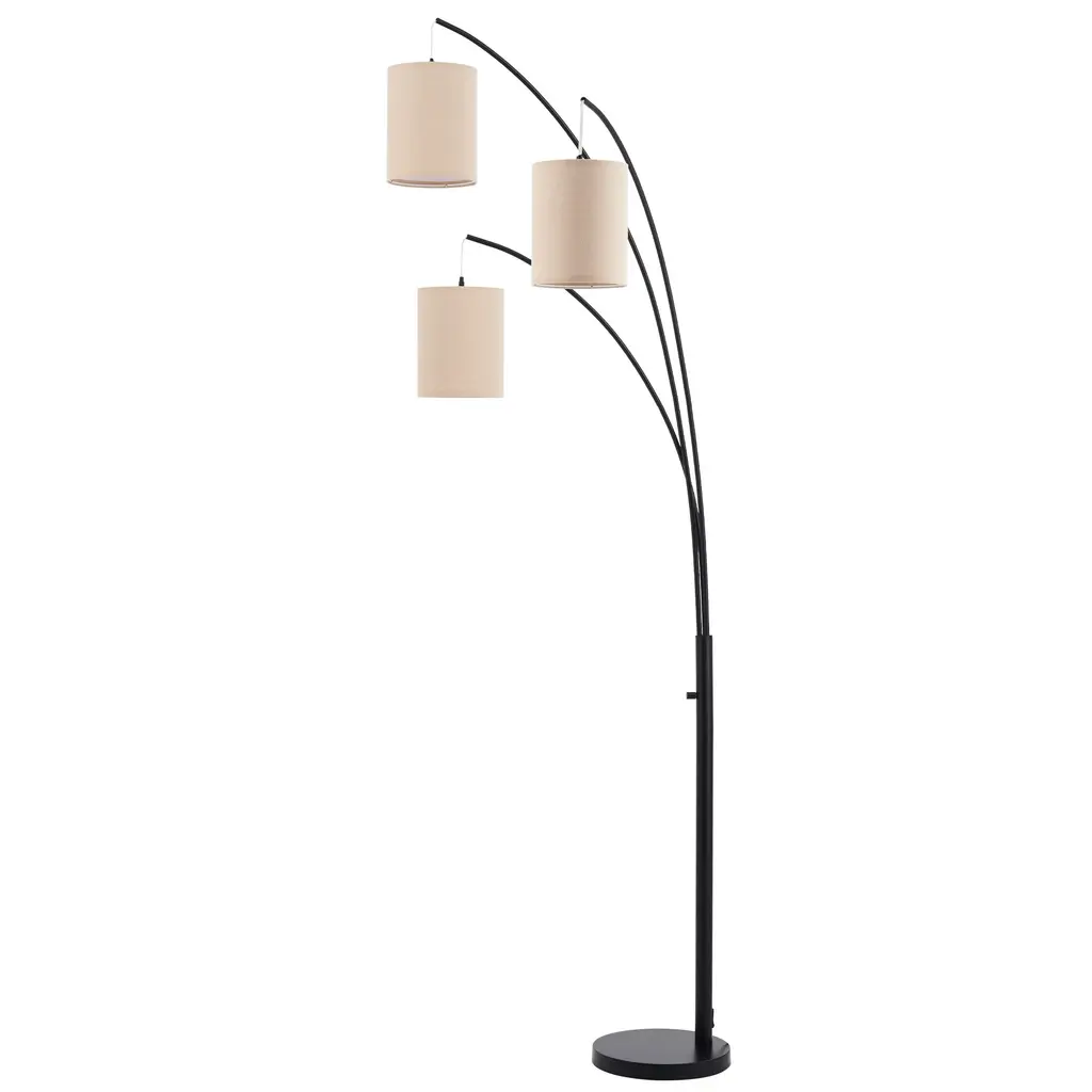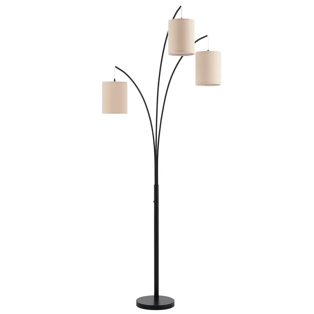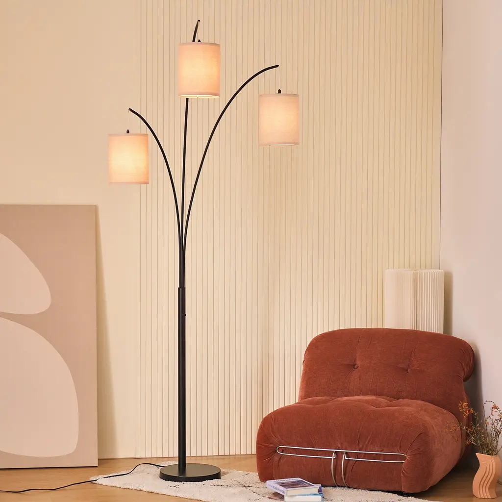 Light up your living space with this contemporary 7-foot tall arc tree floor lamp from CO-Z. Featuring a sleek metal trunk and branches, this lamp is adorned with three white fabric hanging shades that add a stylish touch to any room decor. Its secure 12-inch base and sturdy standing pole allow the three arching arms to extend out and suspend the drum shades over furniture, illuminating armchairs, side tables, or decorative pieces with a minimal floorprint. The rotary switch provides 3 levels of illumination to meet your needs, making this lamp perfect for reading, relaxing, or entertaining.Features:Specifications:
