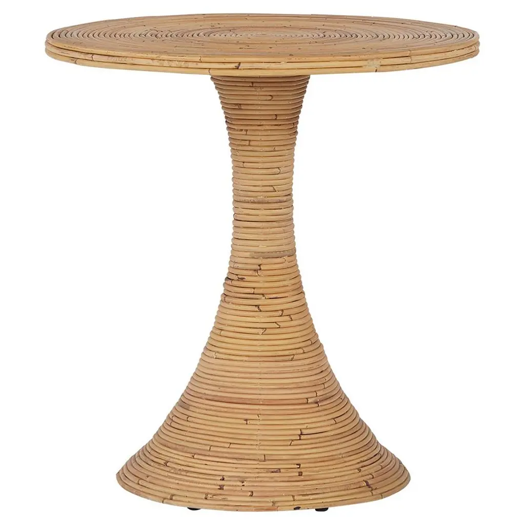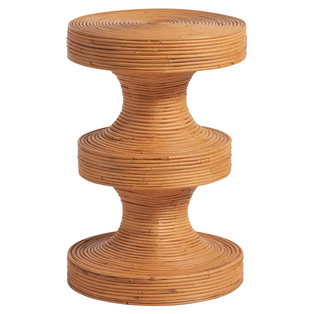 An exemplar of organic elegance, this curvaceous side table is wrapped in rattan for a touch of tropical ease.