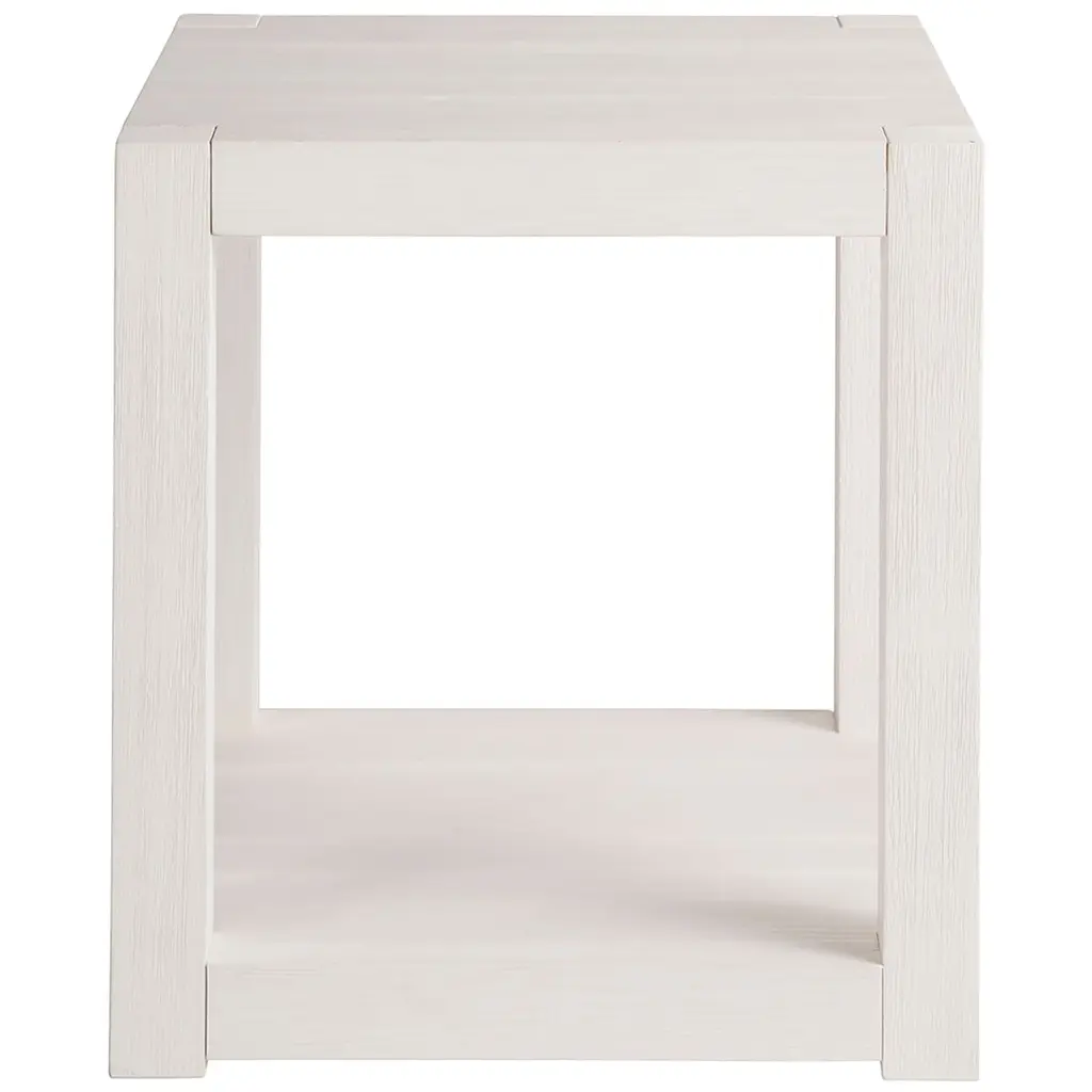 Embrace coastal serenity with the Coastal Living Square End Table, a vision of tranquility for your living space. Its soft white frame, adorned with subtle wooden details and a hand-finished white sand touch, evokes a breath of fresh air and natural beauty. Beyond its aesthetic allure, this end table prioritizes functionality, featuring plastic glides for floor protection and smooth mobility. With dimensions of 21"W x 21"D x 24"H, it provides ample surface space for books, drinks, or decorative items, creating an ideal companion for relaxation or socializing. This end table seamlessly integrates timeless design and coastal charm, elevating the elegance and peaceful ambiance of your home with sophistication.