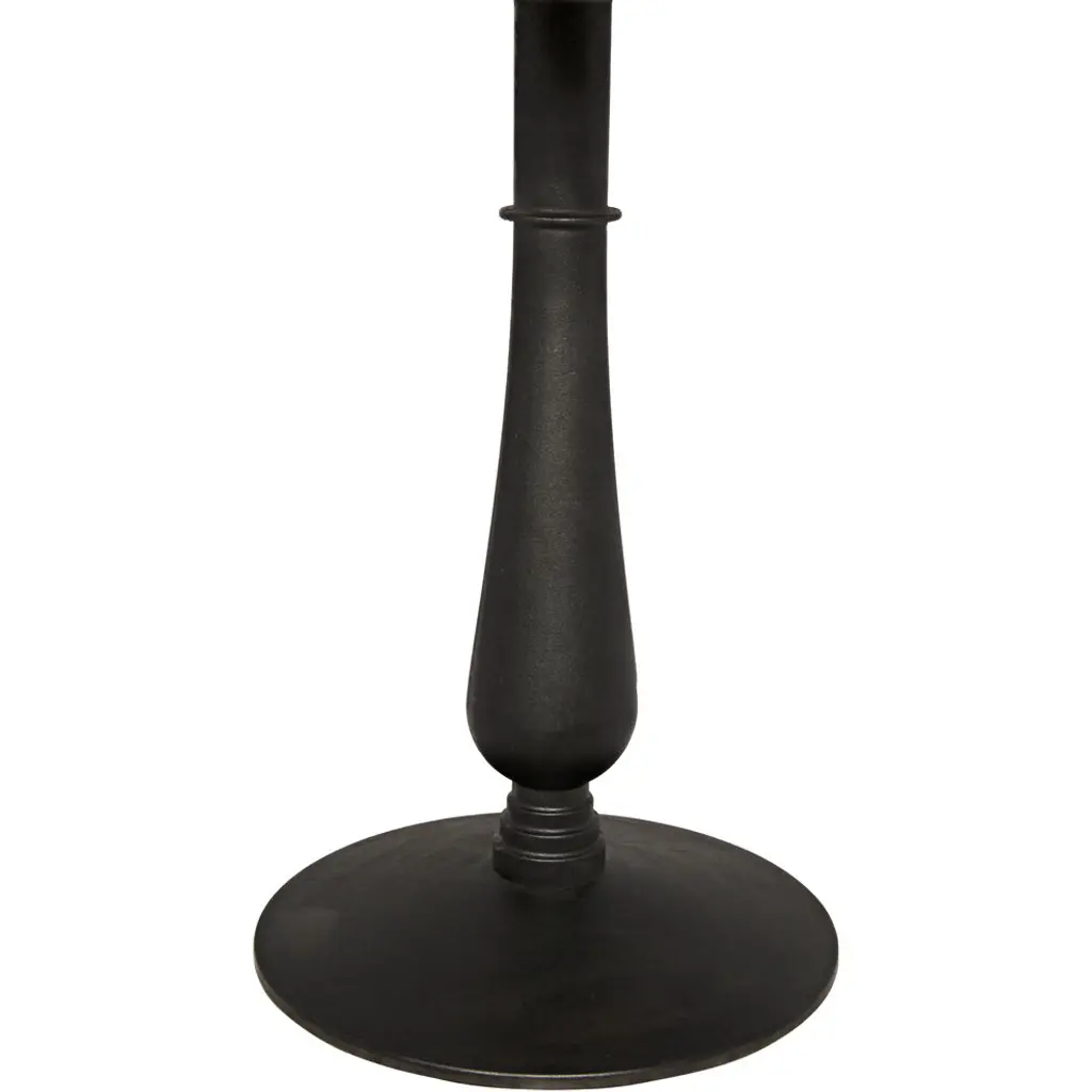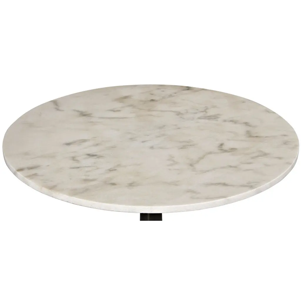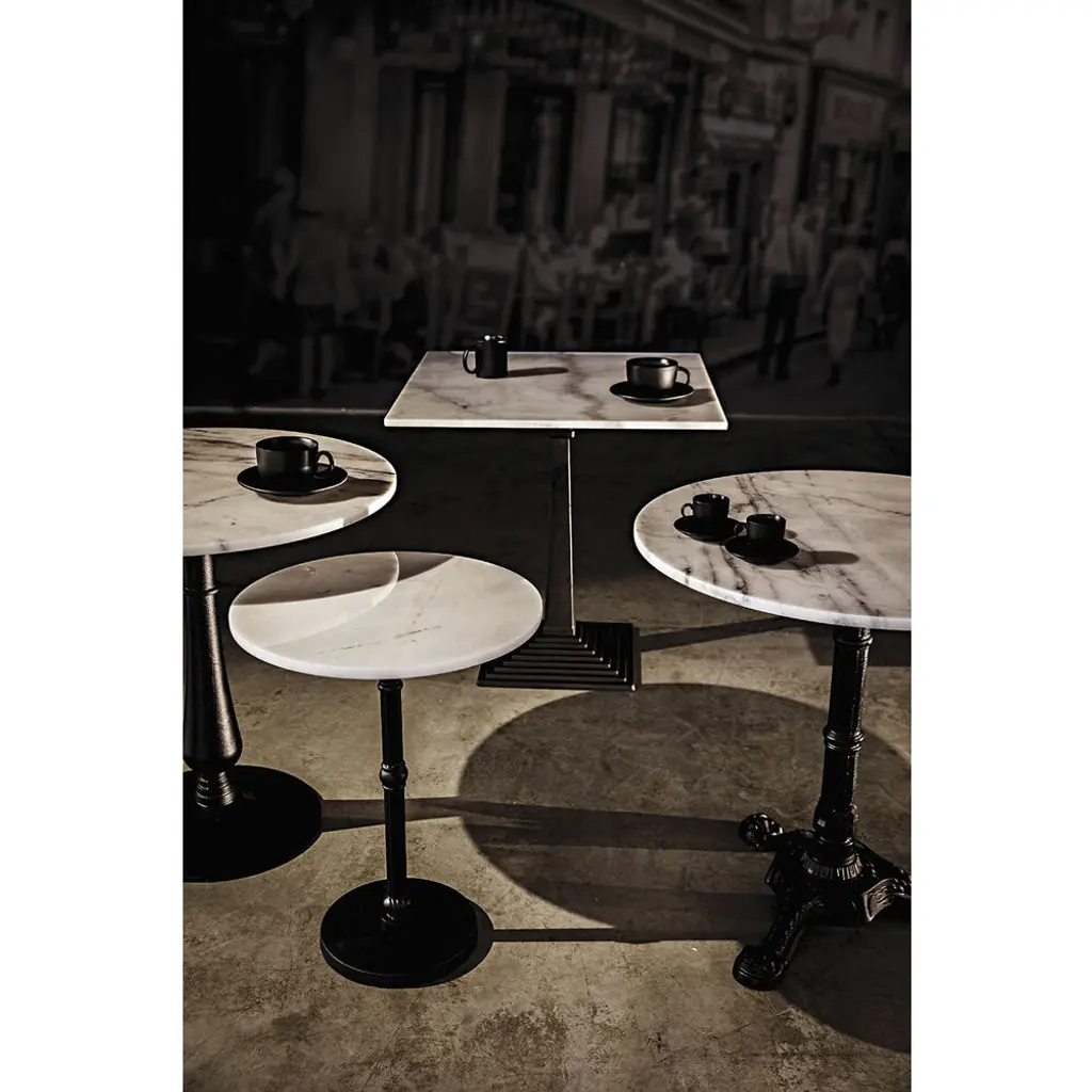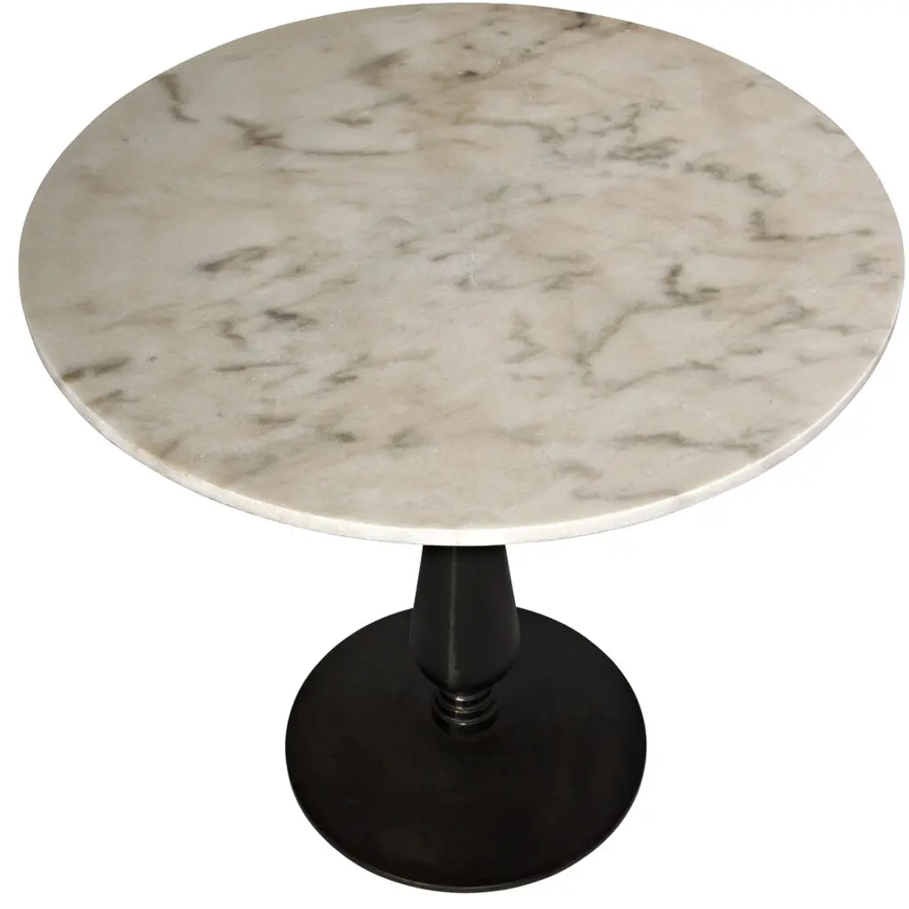 Two elemental materials meet in this quietly dramatic accent table. The base is formed of cast iron, and the top is a slab of marble. No two pieces of stone, and therefore no two tables, will be identical.