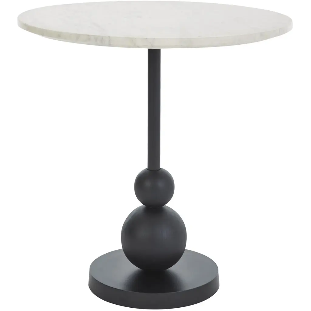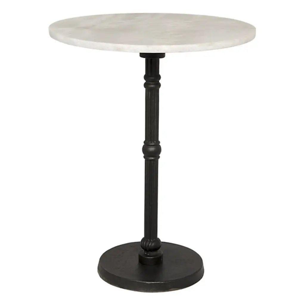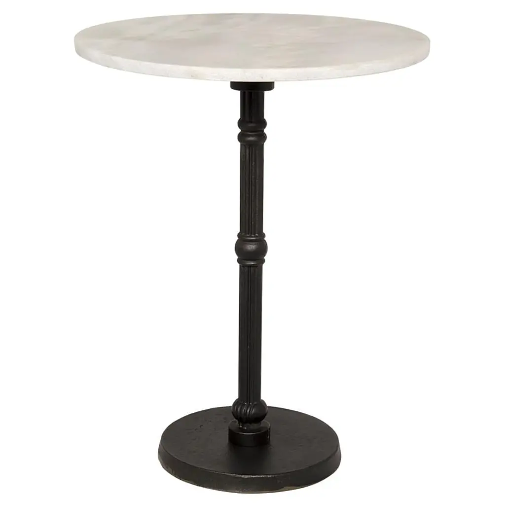 Two elemental materials meet in this quietly dramatic accent table. The base is formed of cast iron, and the top is a slab of natural white marble. No two pieces of marble, and therefore no two tables, will be identical.