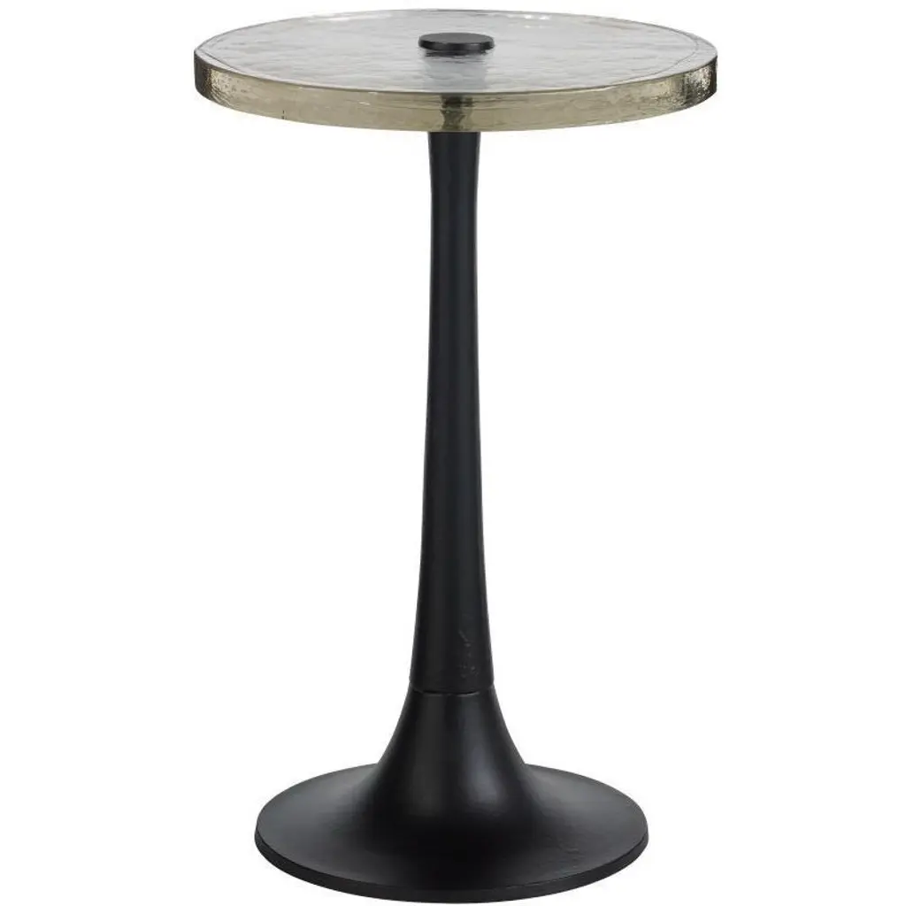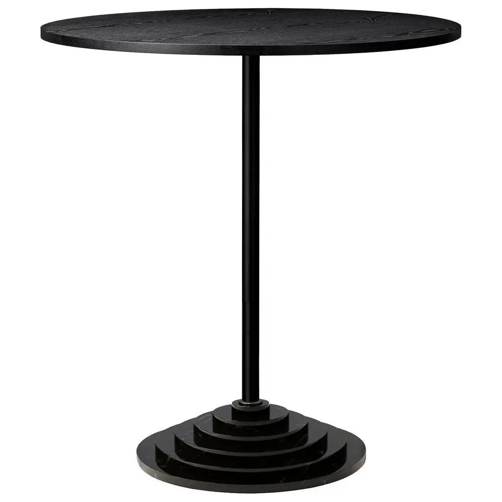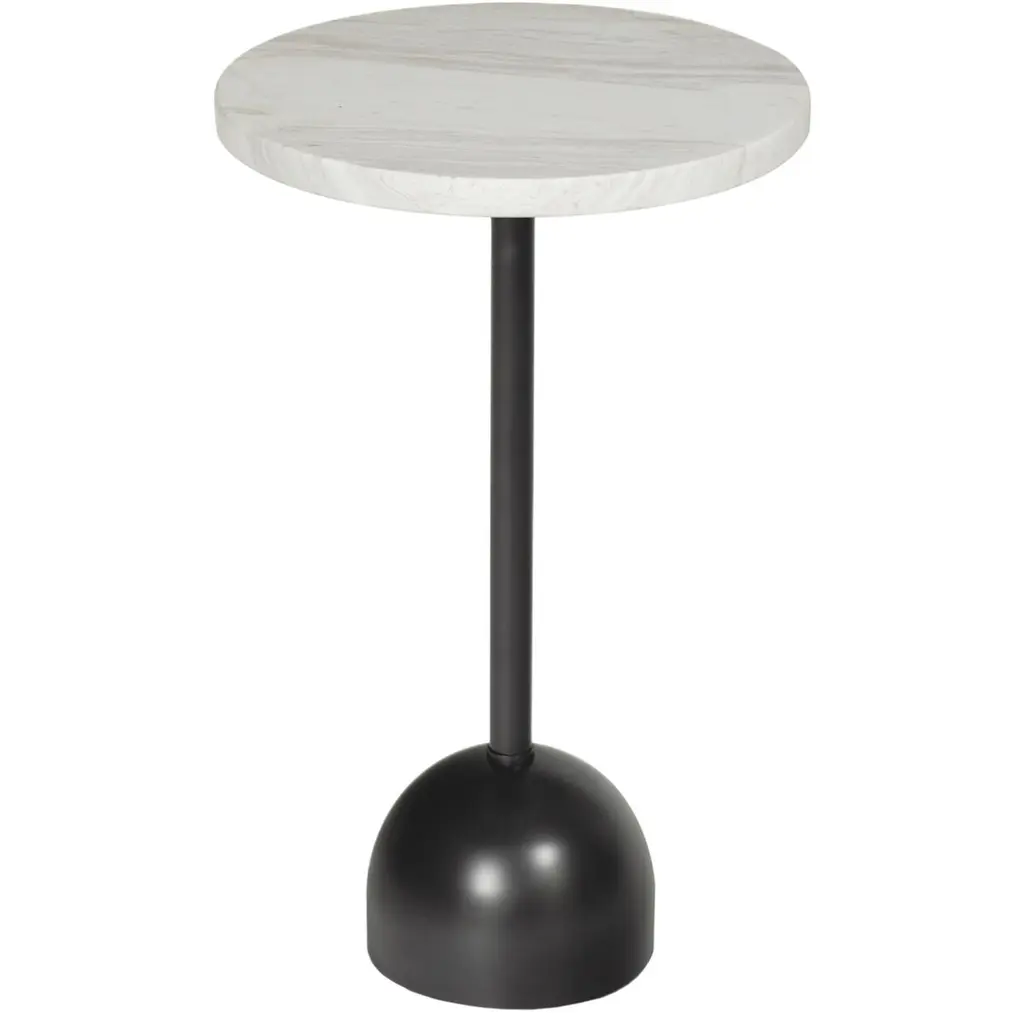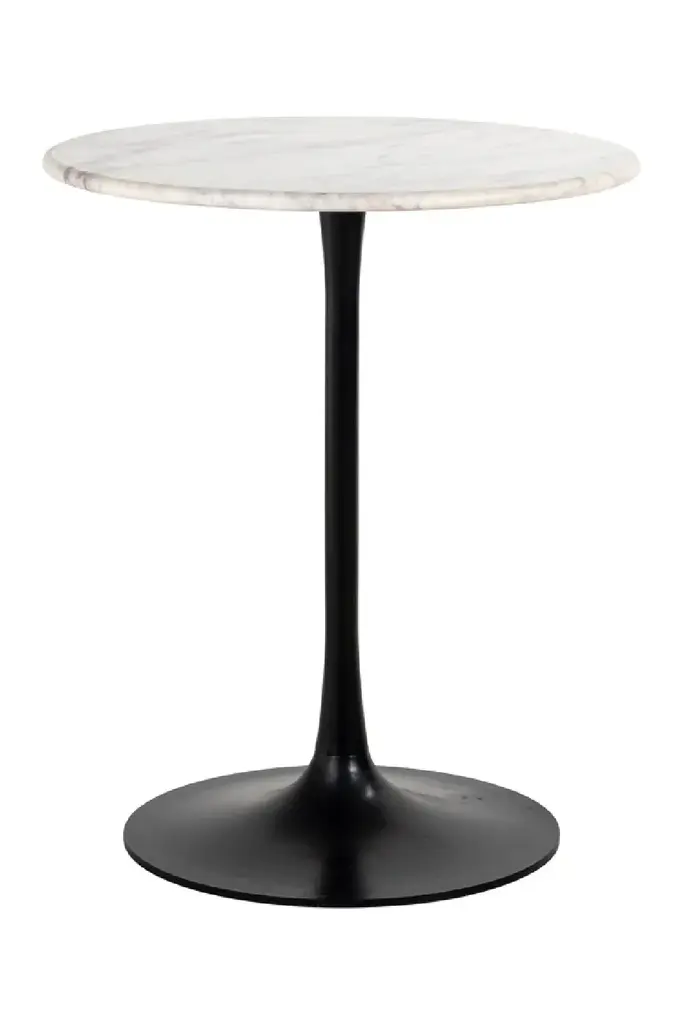 Two elemental materials meet in this quietly dramatic accent table. The base is formed of cast iron, and the top is a slab of natural white marble. No two pieces of marble, and therefore no two tables, will be identical.