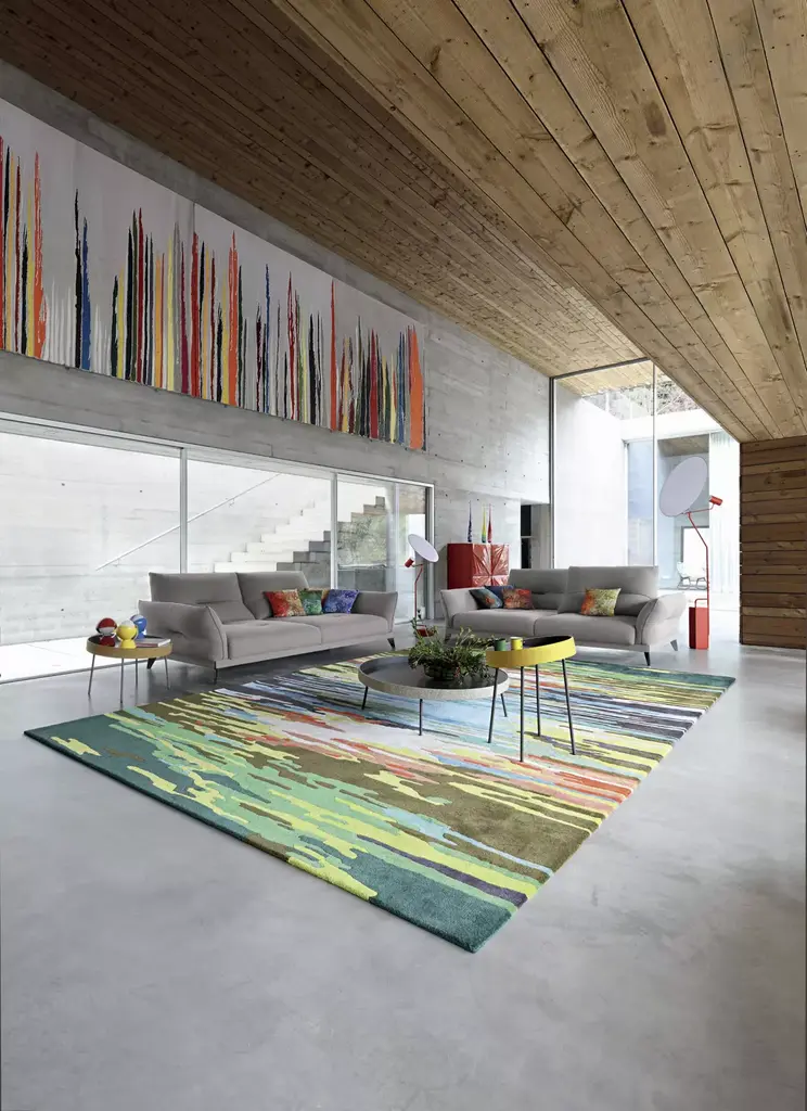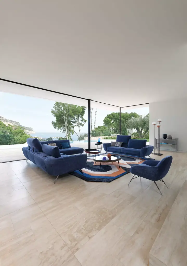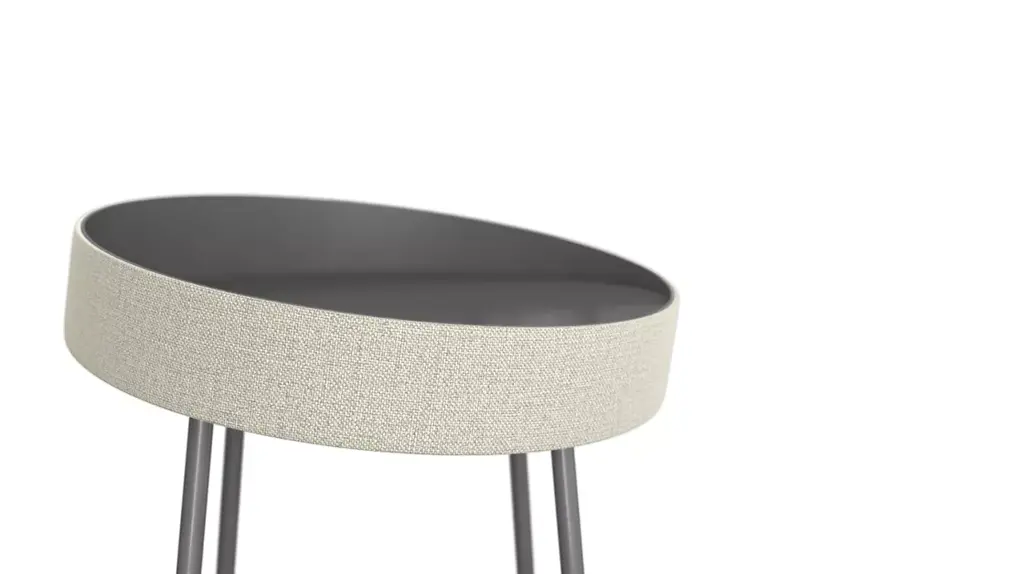 Coin is a family of round side tables that are deliberately unbalanced to evoke the idea of rolling. The circular border is available in (almost!) all the fabrics from the Roche Bobois collection.