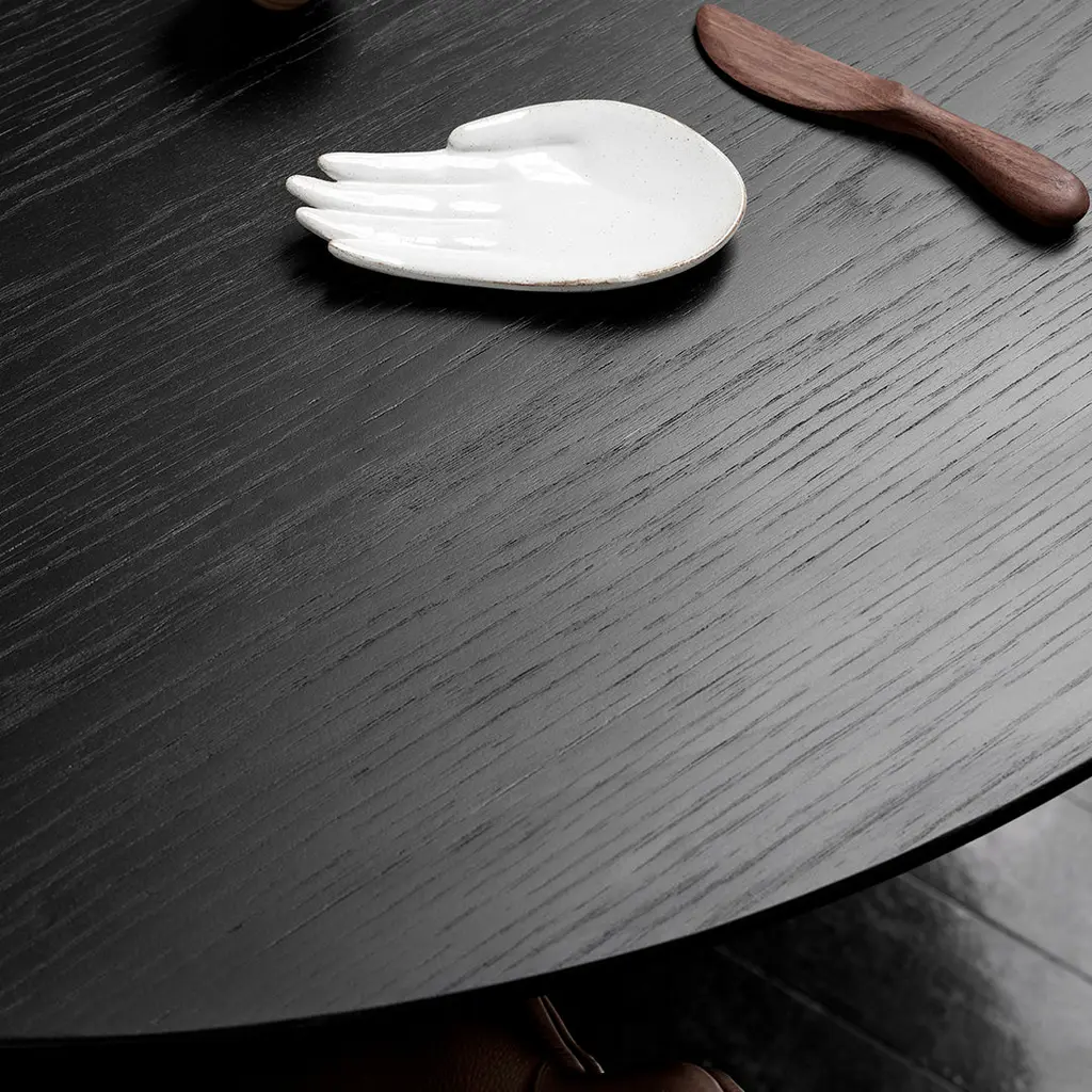 The Coin Side Table, designed by Henrik Pedersen of 365 North for Wendelbo, celebrates the perfect simplicity of circular geometry through a sculptural form that appears deceptively simple yet reveals remarkable presence. As its name suggests, this elegant side table evokes the iconic silhouette of a coin standing on edgea perfect circle balanced atop a gently tapered conical base. Available in two complementary sizes, the Coin table effortlessly fuses circular and conic-shaped components to create a language of soft geometric minimalism. This thoughtful balance of proportions allows the table to function as either a striking standalone accent or as part of a nested composition, creating dynamic visual relationships when paired together in curated interior landscapes. In sophisticated living environments, the Coin elevates everyday rituals with its refined presence. Positioned beside a statement lounge chair in an art-filled living room, it creates a luxurious moment for displaying collectible objects or enjoying an evening aperitif. In minimalist spaces, its sculptural silhouette serves as a powerful counterpoint to linear architecture, while in hospitality settings, a thoughtful arrangement of Coin tables introduces a sense of considered elegance to lobbies and executive suites. The table's distinctive profile makes it particularly well-suited for design-forward interiors where furniture doubles as functional art. The substantial base, cast in aluminum and finished with either sophisticated black or rich dark brown powder coating, provides exceptional stability while maintaining visual lightness. Subtly resembling a weight, this dense foundation ensures the table remains firmly planted despite its seemingly precarious balance. For those seeking an even more refined aesthetic, the base is also available in luxurious black burnished brass that develops a distinctive patina over time. The perfectly circular tabletop continues this exercise in restrained elegance, offered in either practical black laminate or premium stained oak veneer with solid oak edges. This careful material selection provides versatility for various interior styles, from contemporary minimalist to warm Scandinavian modern.
