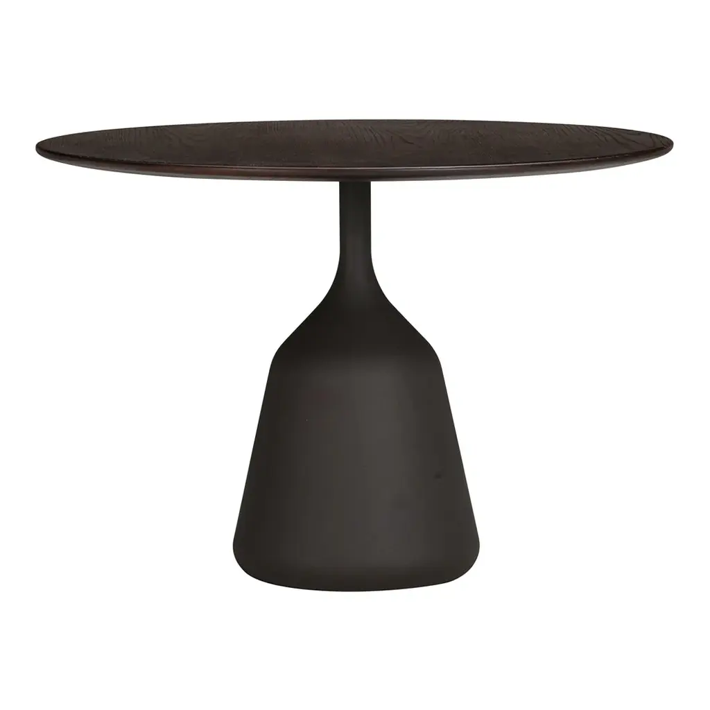 The Coin Side Table, designed by Henrik Pedersen of 365 North for Wendelbo, celebrates the perfect simplicity of circular geometry through a sculptural form that appears deceptively simple yet reveals remarkable presence. As its name suggests, this elegant side table evokes the iconic silhouette of a coin standing on edge—a perfect circle balanced atop a gently tapered conical base.Available in two complementary sizes, the Coin table effortlessly fuses circular and conic-shaped components to create a language of soft geometric minimalism. This thoughtful balance of proportions allows the table to function as either a striking standalone accent or as part of a nested composition, creating dynamic visual relationships when paired together in curated interior landscapes.In sophisticated living environments, the Coin elevates everyday rituals with its refined presence. Positioned beside a statement lounge chair in an art-filled living room, it creates a luxurious moment for displaying collectible objects or enjoying an evening aperitif. In minimalist spaces, its sculptural silhouette serves as a powerful counterpoint to linear architecture, while in hospitality settings, a thoughtful arrangement of Coin tables introduces a sense of considered elegance to lobbies and executive suites. The table's distinctive profile makes it particularly well-suited for design-forward interiors where furniture doubles as functional art.The substantial base, cast in aluminum and finished with either sophisticated black or rich dark brown powder coating, provides exceptional stability while maintaining visual lightness. Subtly resembling a weight, this dense foundation ensures the table remains firmly planted despite its seemingly precarious balance. For those seeking an even more refined aesthetic, the base is also available in luxurious black burnished brass that develops a distinctive patina over time.The perfectly circular tabletop continues this exercise in restrained elegance, offered in either practical black laminate or premium stained oak veneer with solid oak edges. This careful material selection provides versatility for various interior styles, from contemporary minimalist to warm Scandinavian modern.