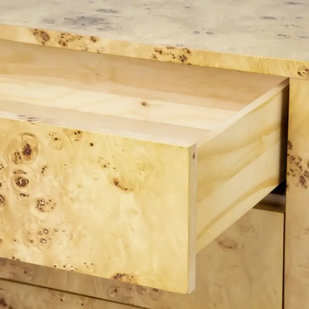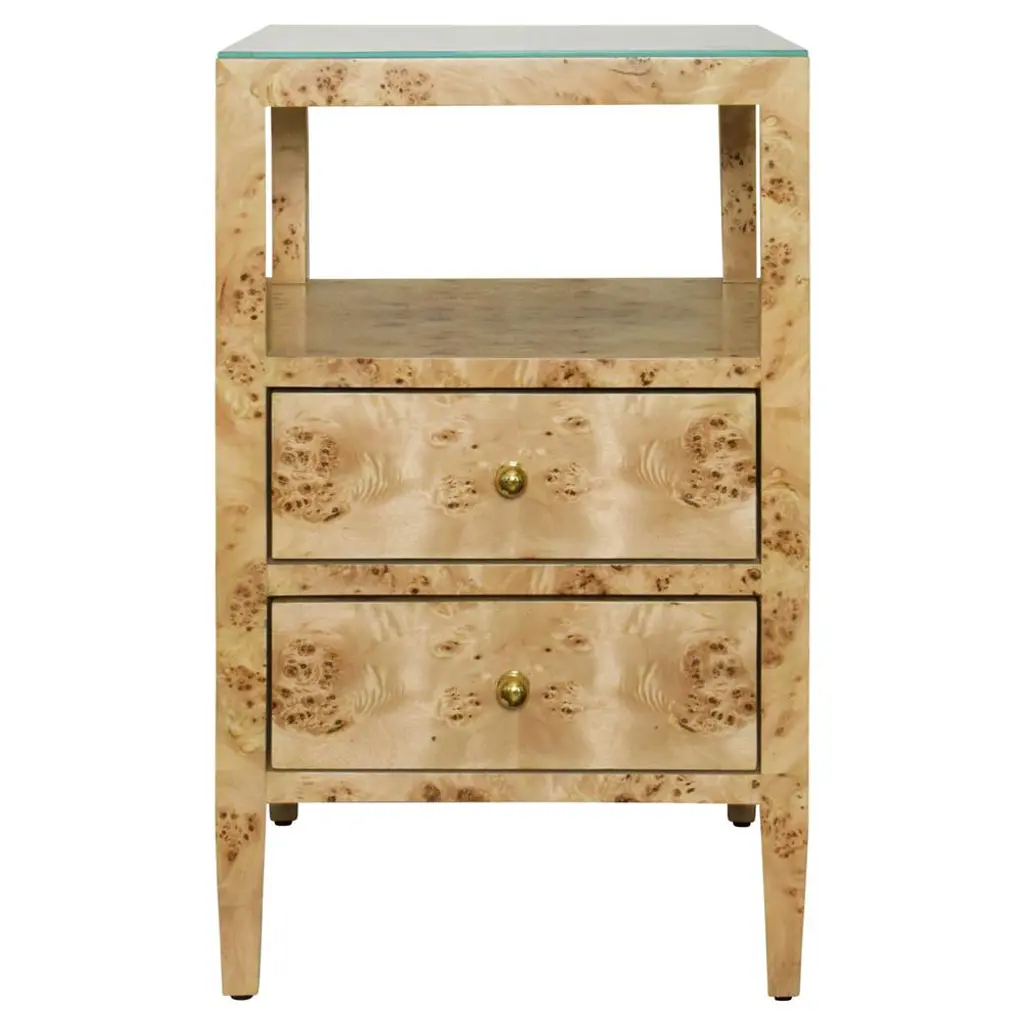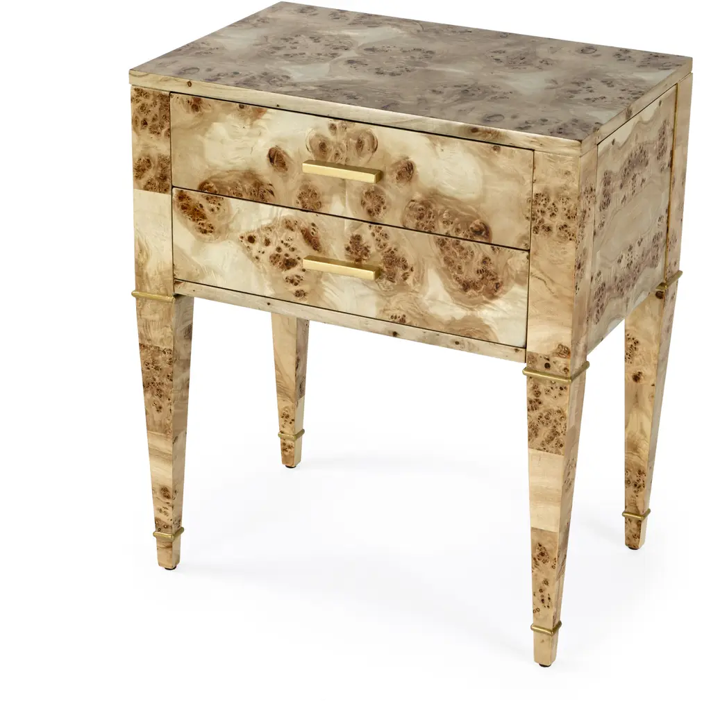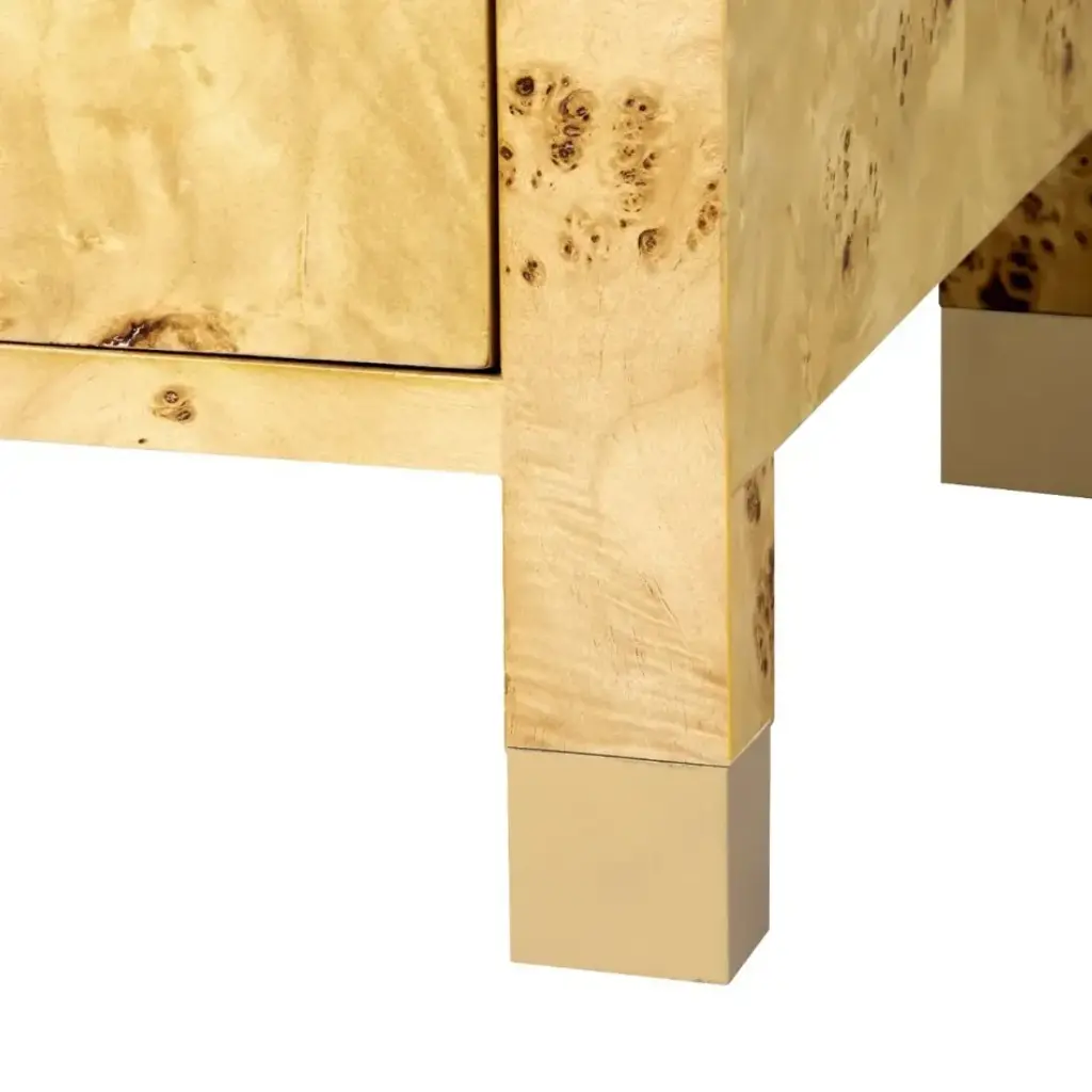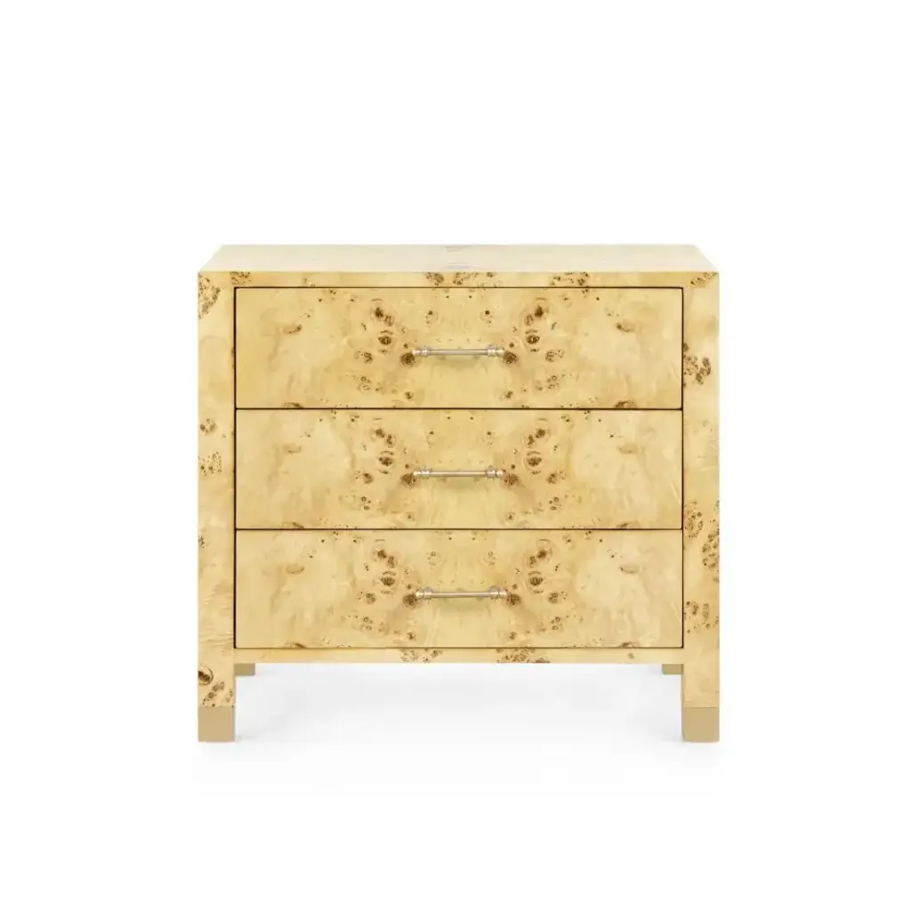 The Cole Collection is an instant classic. Immerse yourself in the richness of warm burlwood, complemented by custom-cast antique brass pulls and sabots. The Cole’s clean, rectilinear design showcases the beauty of the finish and offers three drawers for ample storage. This timeless piece is versatile enough for a pair of nightstands, an elegant entry or hallway solution, or a refined side table in your living room or office.