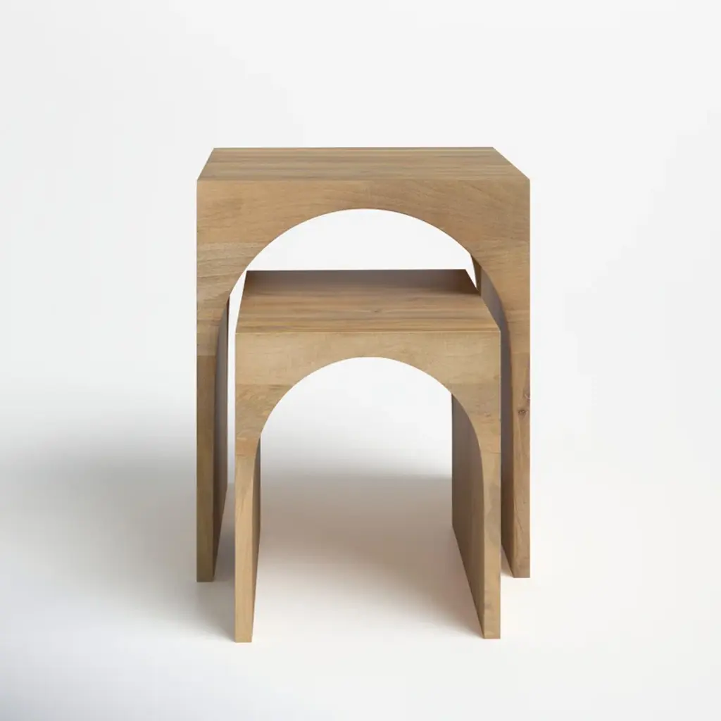 We love a good nesting table, especially one that is as raw as it is refined. The Coletta offers a set of two, light brown, solid wood accent tables that have been expertly designed to create arches that interconnect with one another. Enjoy the fantastic woodwork that has gone into showcasing the wonderful grain and texture of the mango wood. The versatile tables will add interest to any home or office space and can be configured in a multitude of arrangements to suit the requirements of the room.