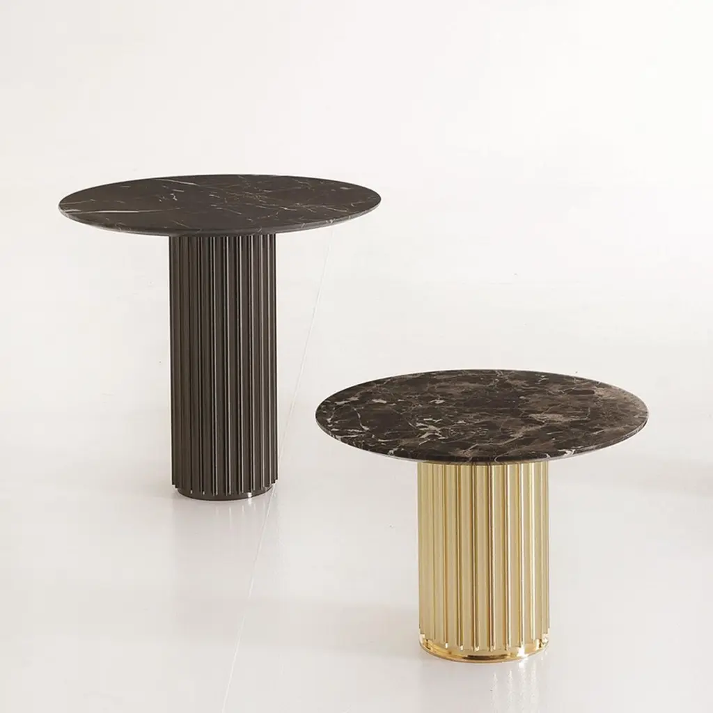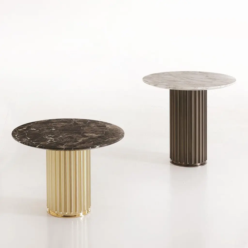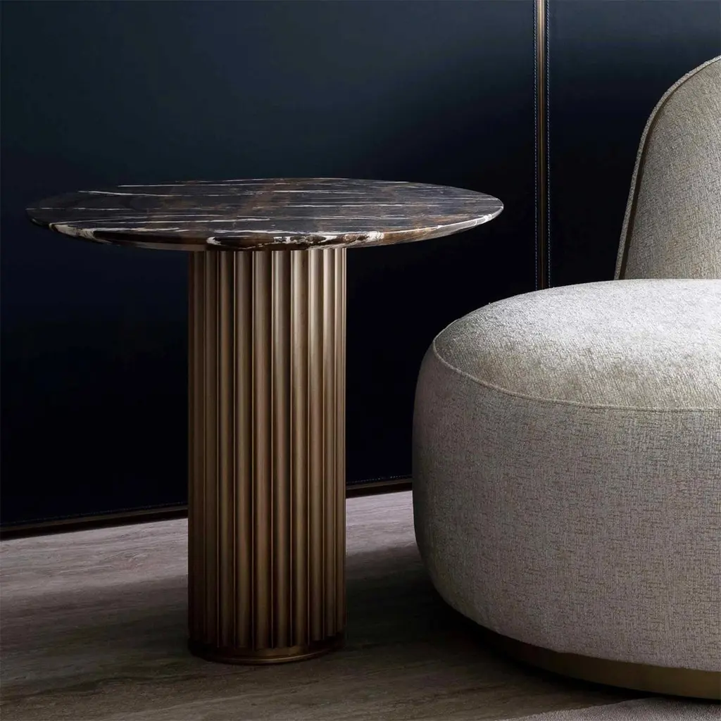Side table colisee bronze with solid bronzebase and with emperador marble round top.Measures: Diameter 60cm x height 58cm, price: 3650,00€.Also available in diameter 50cm x height 58cm, price: 3500,00€.Also available with glossy gold base with emperador marbleround top in diameter 50cm x height 38cm, price: 3200,00€.Also available in diameter 60cm x height 38cm, price: 3290,00€.Also available with bronze base with white Calacatta roundmarble top in diameter 50cm x height 48cm, price: 3750,00€.Also available in diameter 60cm x height 48cm, price: 3850,00€.