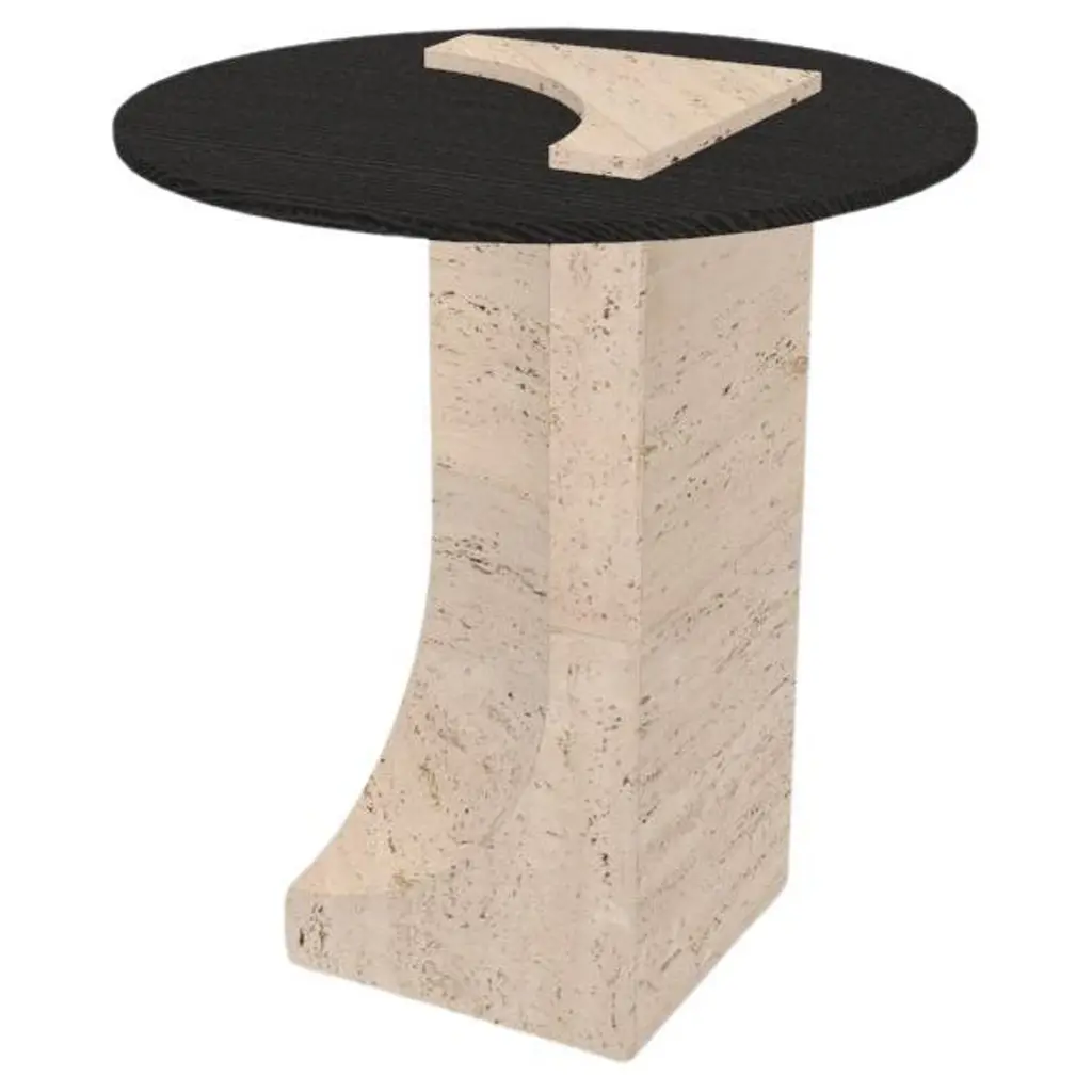 Collector Totem Side Table In Travertino Marble