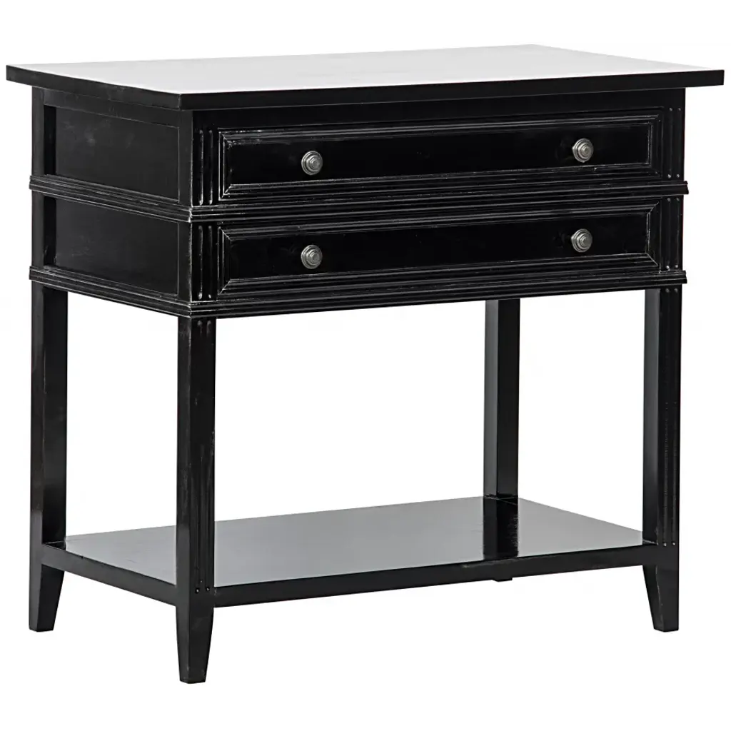 This lovely solid birch side table has not only been expertly distressed for the look of an heirloom piece, with its simple lines and masterful construction it is sure to become one! Two slim drawers with complementary hardware provide plentiful handy storage.