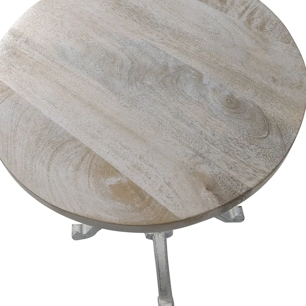 Add character and charm to any space with our Colton Industrial Round Side Table, a perfect blend of rustic warmth and vintage industrial style. Featuring a lightly whitewashed, distressed wood top and a sturdy cast iron base with claw-style feet, this table brings bold personality to living rooms, entryways, or cozy corners.The compact round shape makes it ideal as a drink table, plant stand, or versatile accent piece, while the solid iron pedestal base ensures lasting durability and visual weight. Its weathered finish and unique textural contrast make it an easy fit for farmhouse, loft, or eclectic interiors.