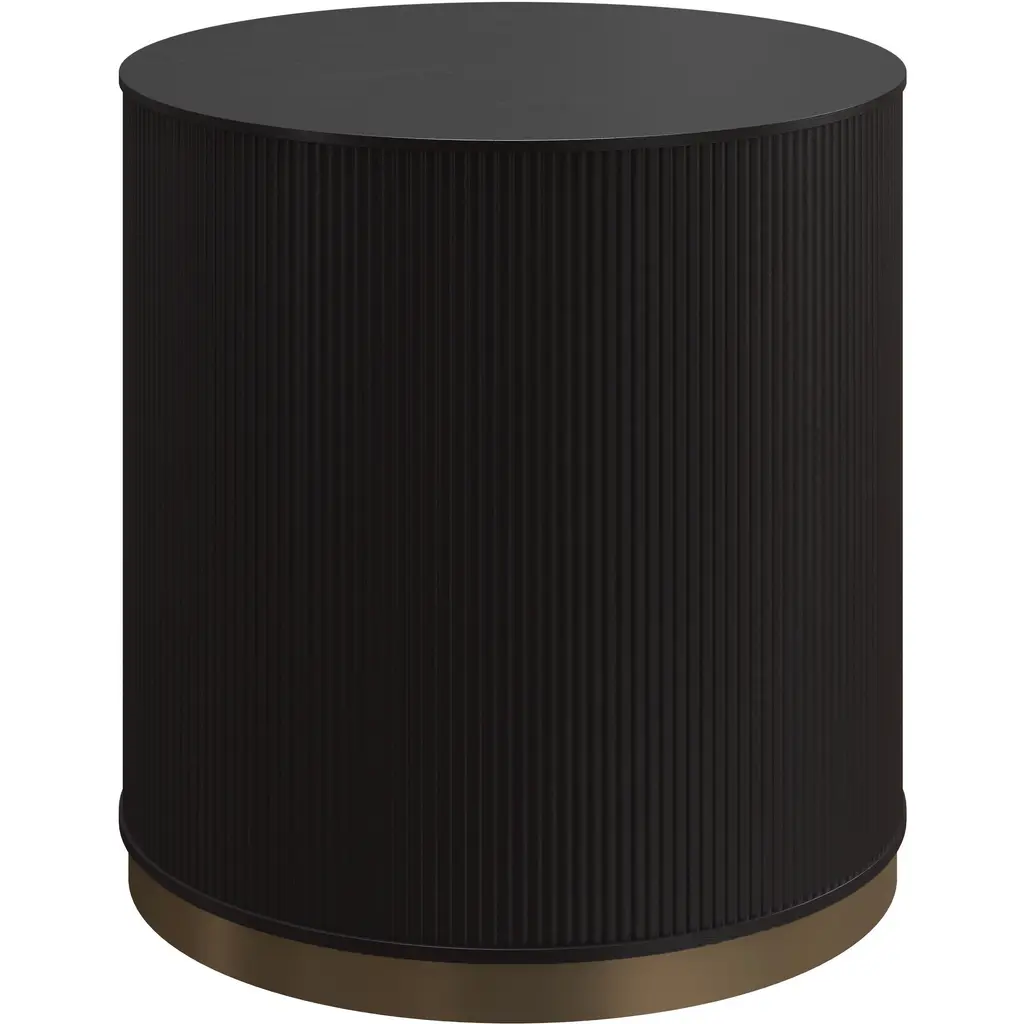 The modern and stylish side table features a unique fluted cylindrical structure crafted from ash wood and finished in a sleek Dark Black shade, while the ceramic top adds a refined touch to its overall design. Perfect for adding sophistication and contemporary charm to any space, this piece combines function and beauty in a striking design.
