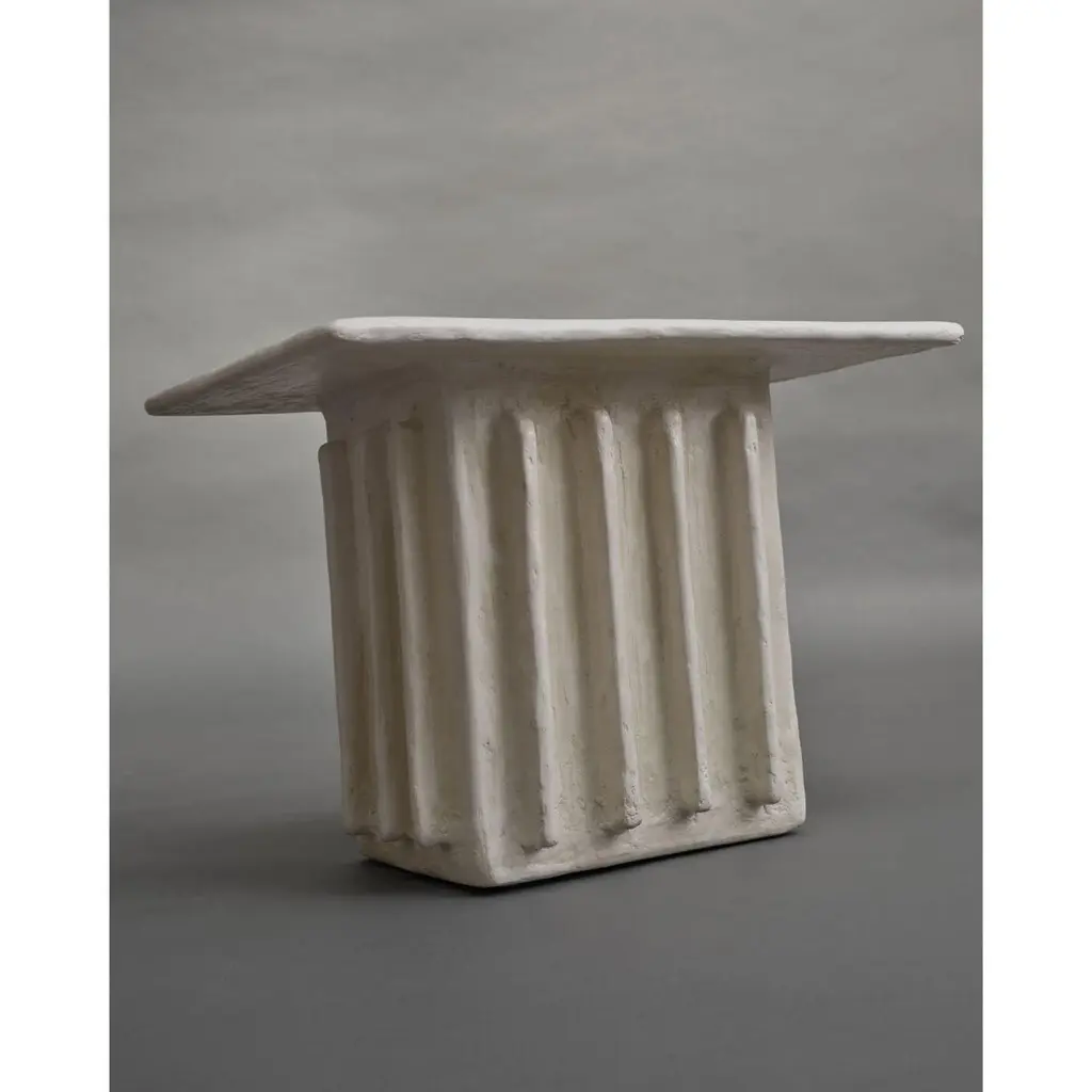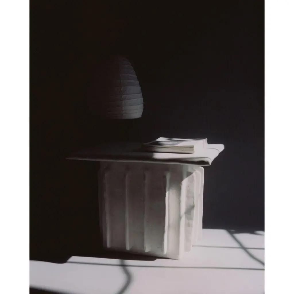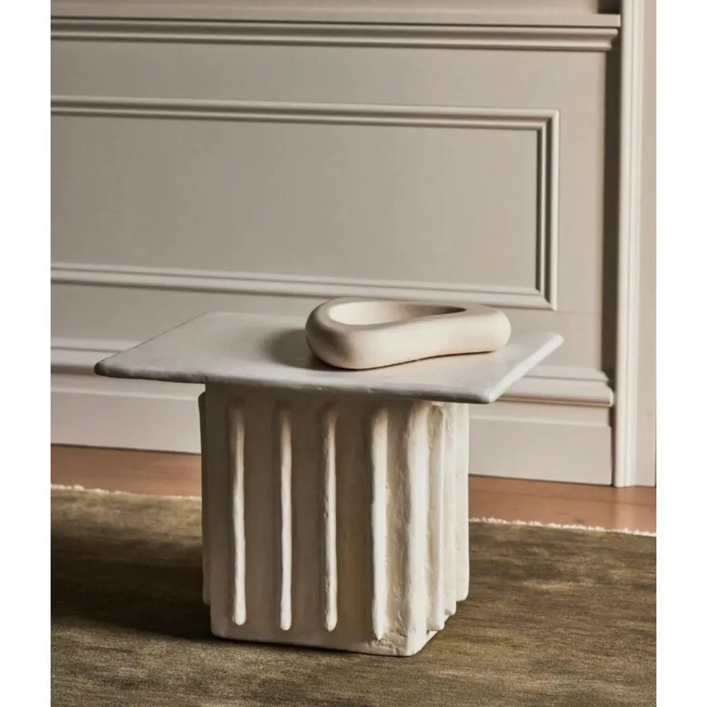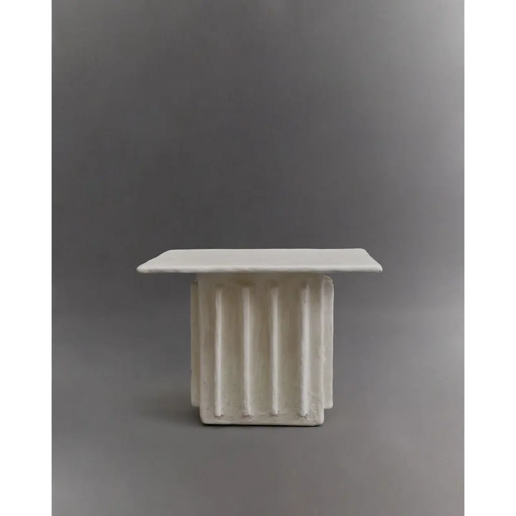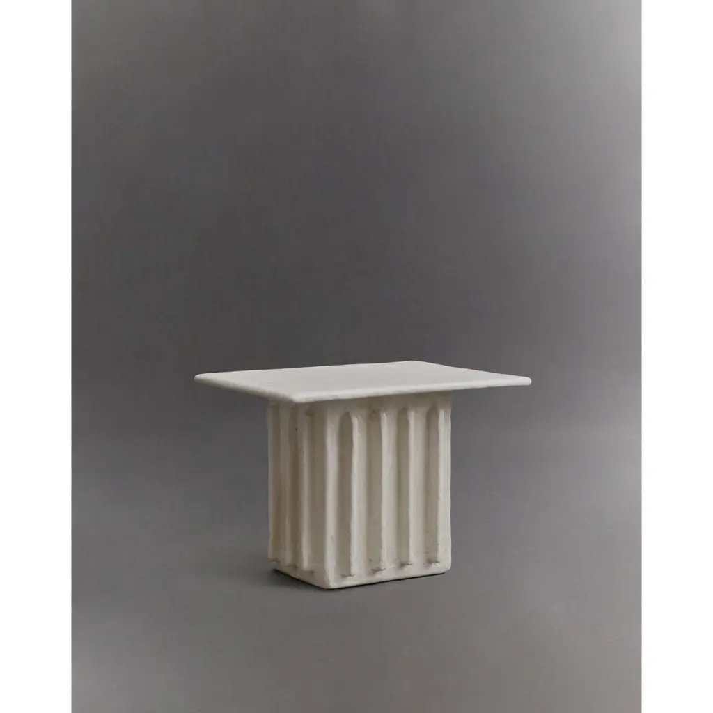 Columnar side table by OmbiaDimensions: W 42 x D 33 x H 43.5 cmMaterials: White raw plaster finish. Custom colors upon request. Ombia is a ceramic sculpture and design studio based in Los Angeles. The name and its roots originates from Colombia, where designer and founder Cristina Moreno comes from. She hand sculpts every piece, inspired by the dedicated artisans and craftsmanship of her country. Each piece holds a unique expression that inspires the everyday.Cristina's approach to furniture design is centered around celebrating the organic and imperfect, creating pieces that embody the beauty of handcrafted design. Each piece is carefully made by hand, imbuing it with a unique character and warmth. Ombia embodies texture, unconventional forms, proportions and attention to detail. Inspired to give a moment of pause, these creations will elevate and provide sanctuary to the home.