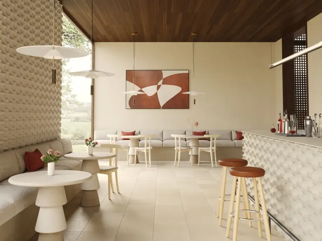 Com is a side table entirely made of Pimar natural stone in its three characteristic color shades, thanks to the turning technique. Com is defined by a circular top supported by a central structure consisting of three truncated cones. Suitable for both indoor and outdoor.