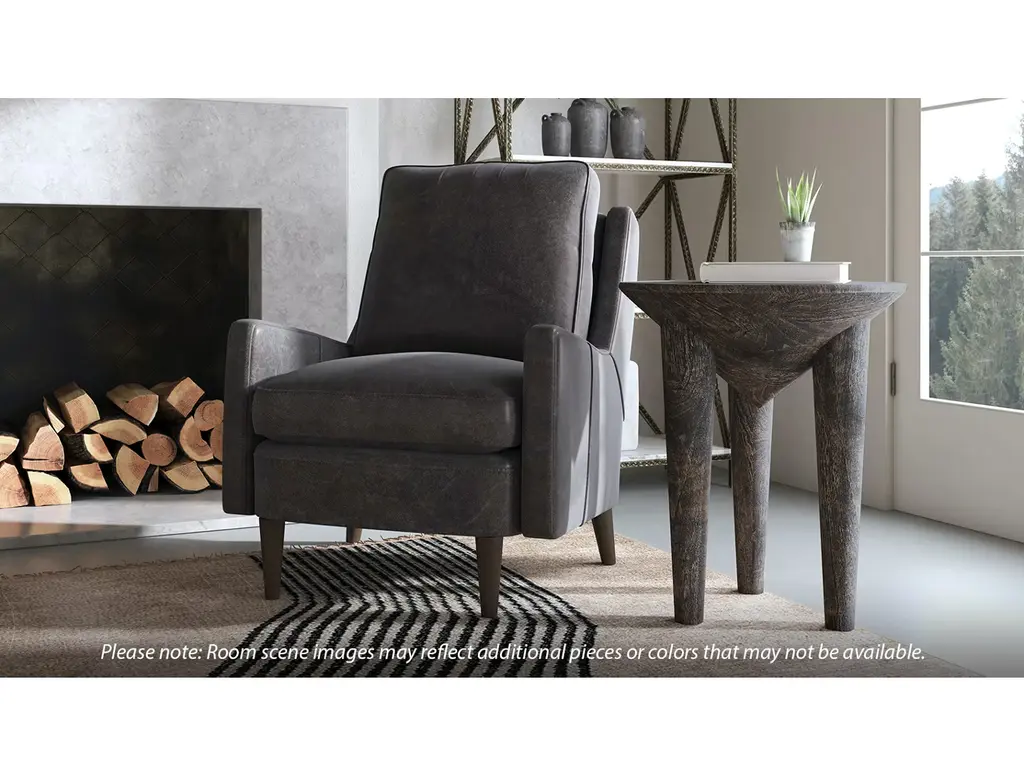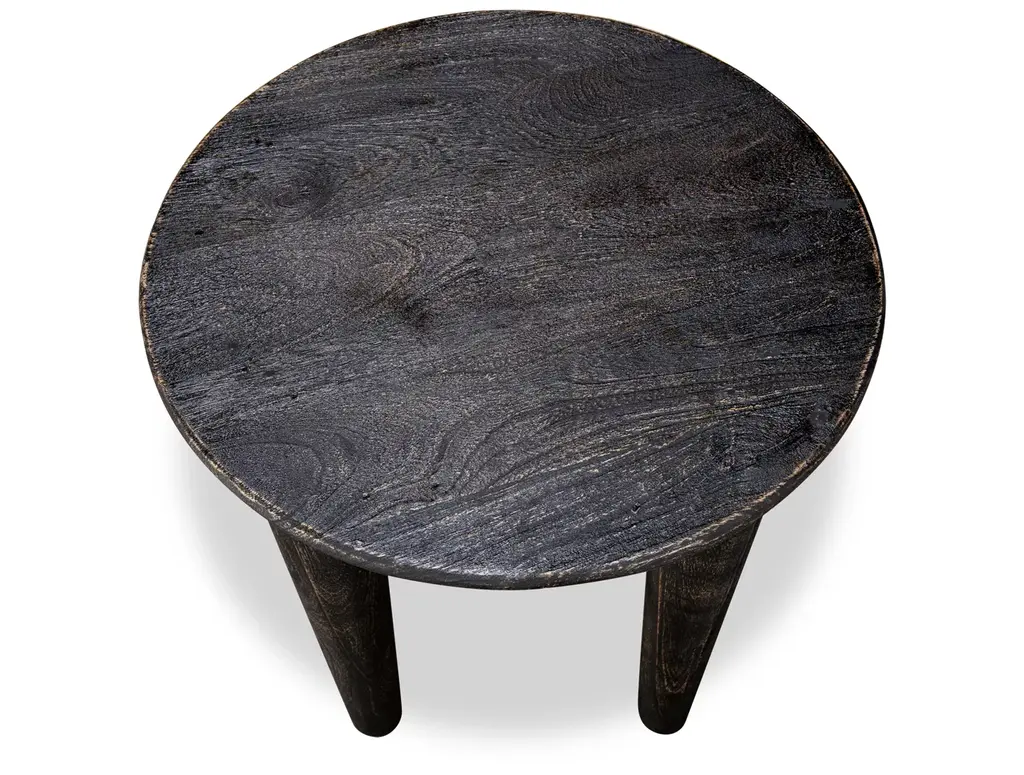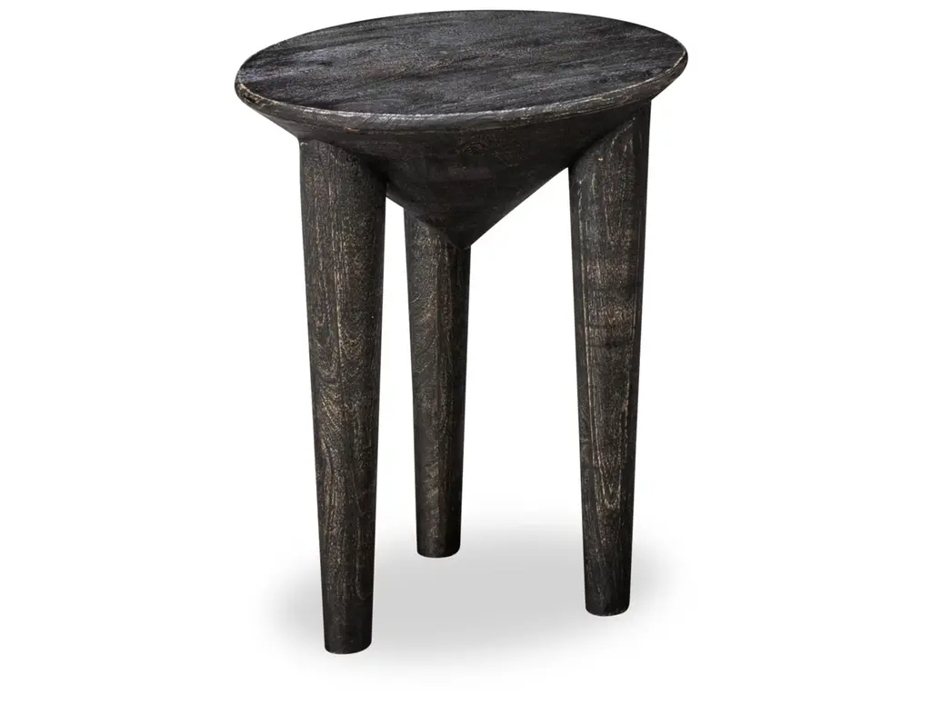Add a dash of architectural flair to your living room with the Hooker Furniture Commerce Pyramid Side Table. This unique accent table features a round top with inverted pyramid design supported by three chunky tapered legs. The distressed black finish showcases the wood grain to beautiful effect.
