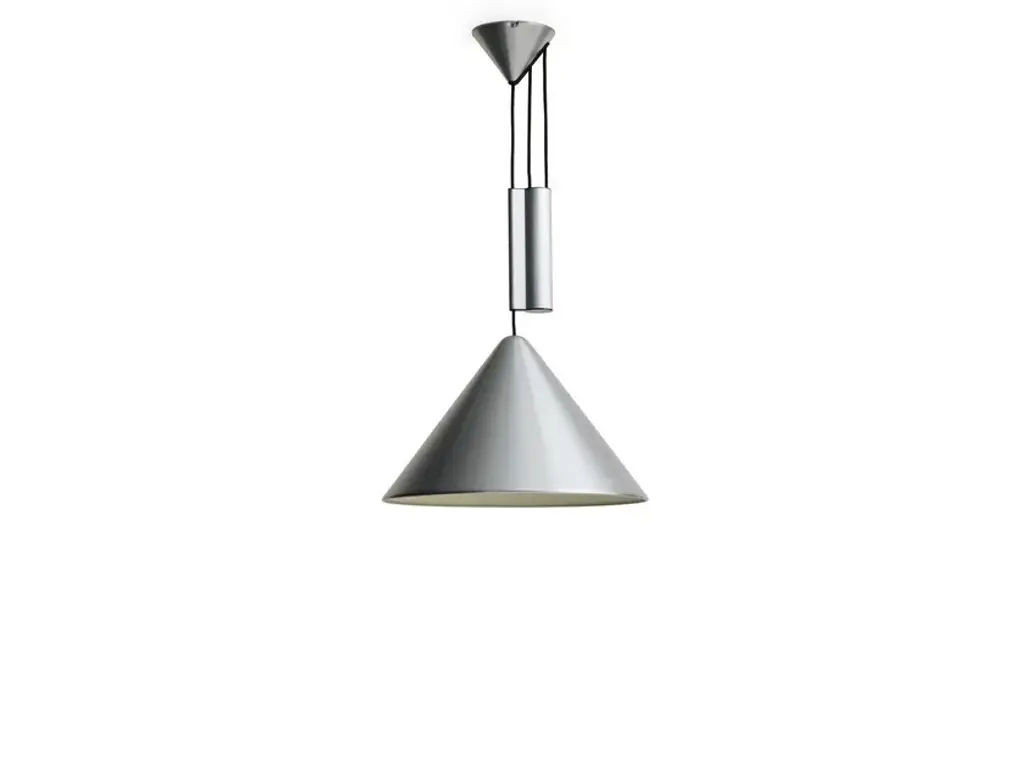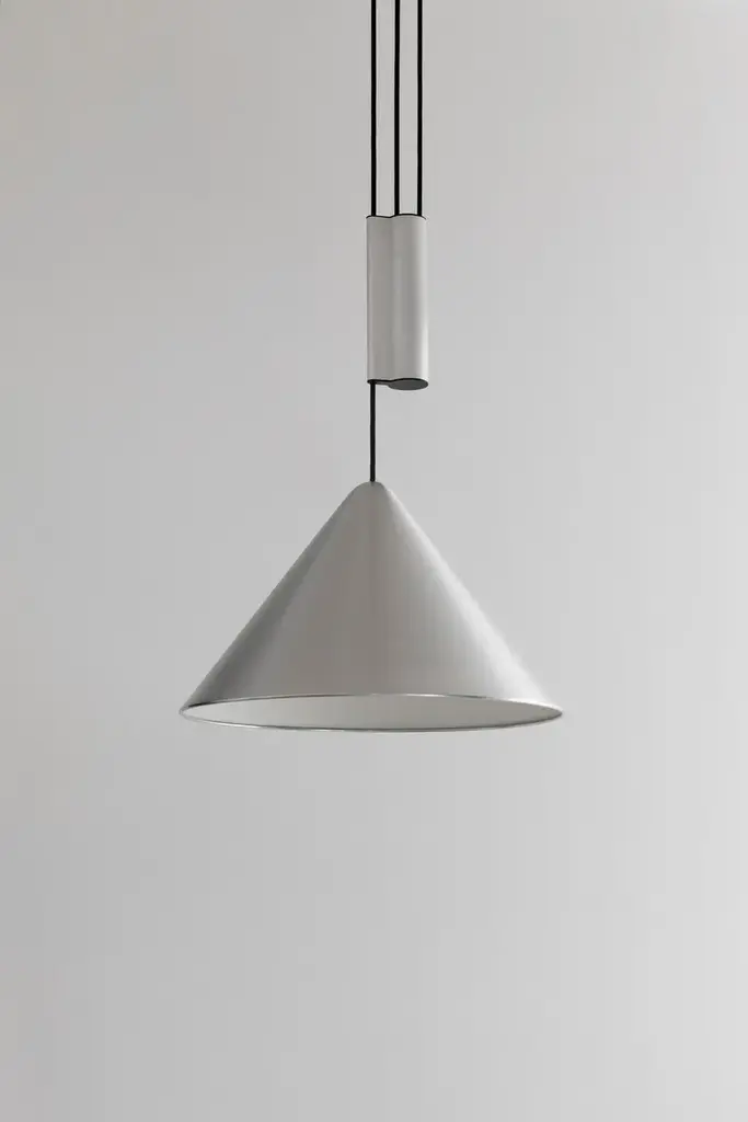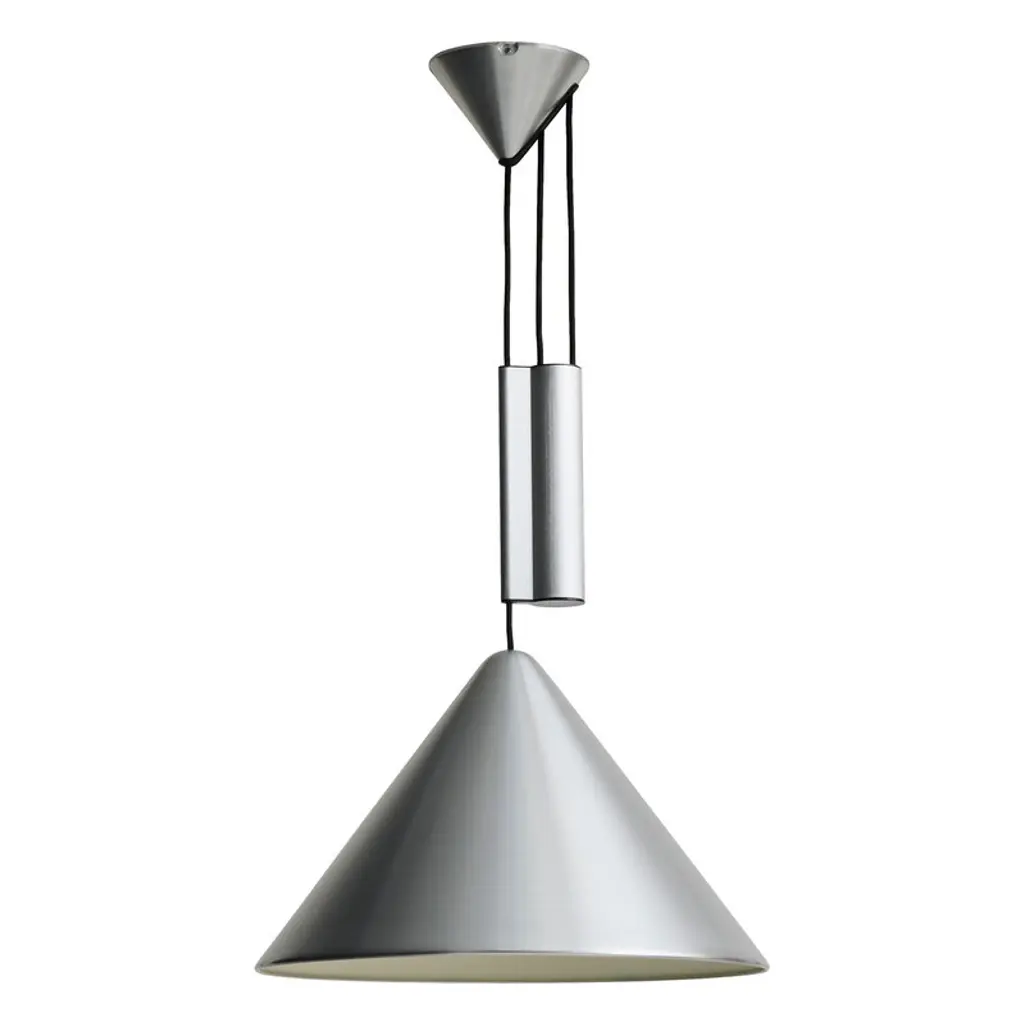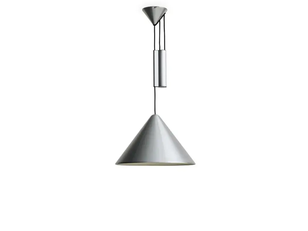 Compass is an adjustable aluminum LED pendant lamp.MATERIALS:SHADE: Spun aluminium in brushed or wet sprayed finish with bulb holderbracket on insideCEILING CANOPY: Spun aluminium in brushed or wet sprayed finishCOUNTERWEIGHT: Extruded aluminium casing in brushed or wet sprayed finish with diecastend caps. Sand-cast iron weightCORD: Braided textile cable in black with silicone insulationDesigned for HAY by Julien Renault, the Compass Pendant delivers a modern reinterpretation of the classic pendant typology. Centred around a slanted conical shade suspended from the ceiling, the lamp’s uncluttered silhouette offers a refined presence with visual balance. In addition to a traditional static model, Compass is also available in a height-adjustable variant, allowing users to precisely position the light according to their activity – ideal over a table, where the illumination can shift seamlessly between focused tasks and shared meals. Combining functionality with timeless aesthetics, the pendant offers flexible lighting solutions for a wide range of rooms and settings.