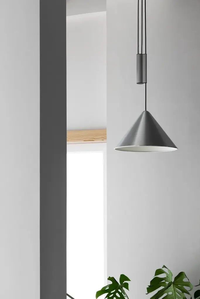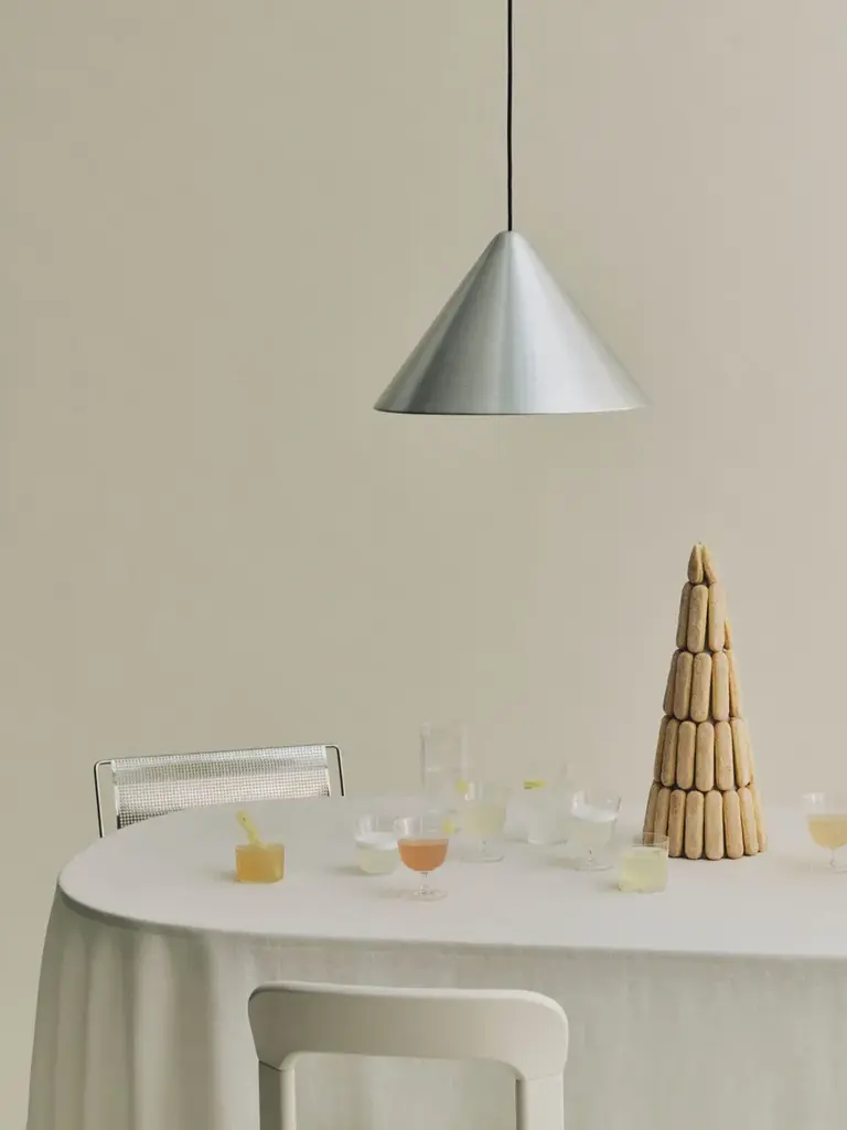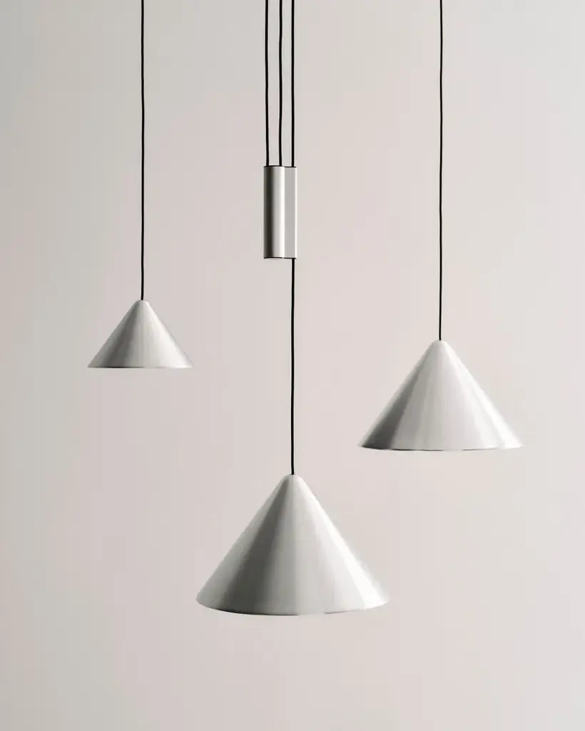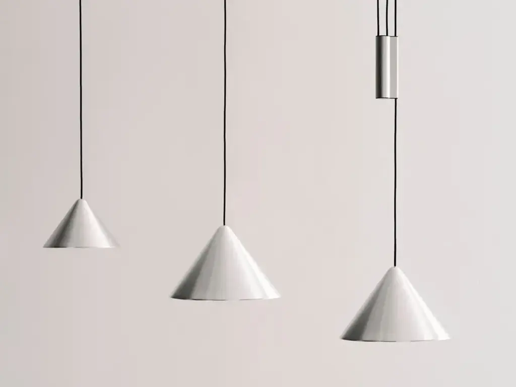 Compass is an adjustable aluminum LED pendant lamp.MATERIALS:SHADE: Spun aluminium in brushed or wet sprayed finish with bulb holderbracket on insideCEILING CANOPY: Spun aluminium in brushed or wet sprayed finishCOUNTERWEIGHT: Extruded aluminium casing in brushed or wet sprayed finish with diecastend caps. Sand-cast iron weightCORD: Braided textile cable in black with silicone insulationDesigned for HAY by Julien Renault, the Compass Pendant delivers a modern reinterpretation of the classic pendant typology. Centred around a slanted conical shade suspended from the ceiling, the lamp’s uncluttered silhouette offers a refined presence with visual balance. In addition to a traditional static model, Compass is also available in a height-adjustable variant, allowing users to precisely position the light according to their activity – ideal over a table, where the illumination can shift seamlessly between focused tasks and shared meals. Combining functionality with timeless aesthetics, the pendant offers flexible lighting solutions for a wide range of rooms and settings.