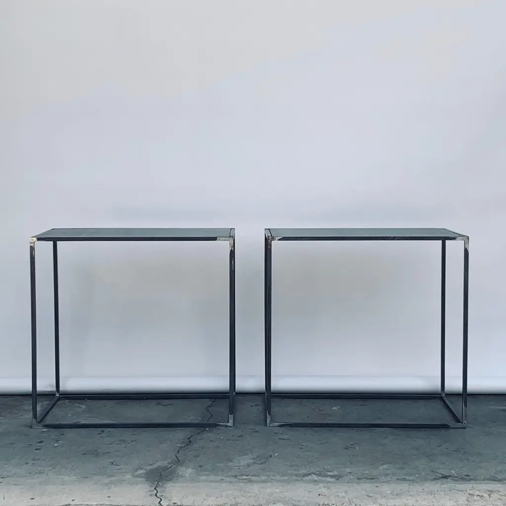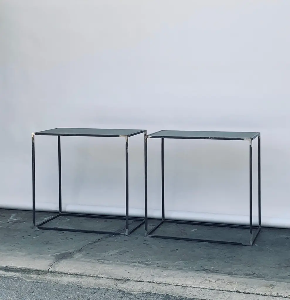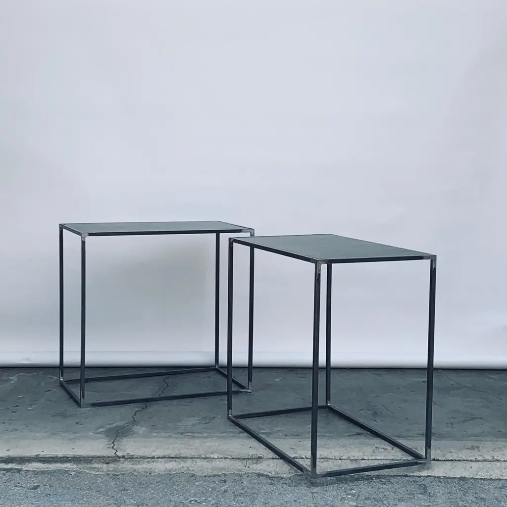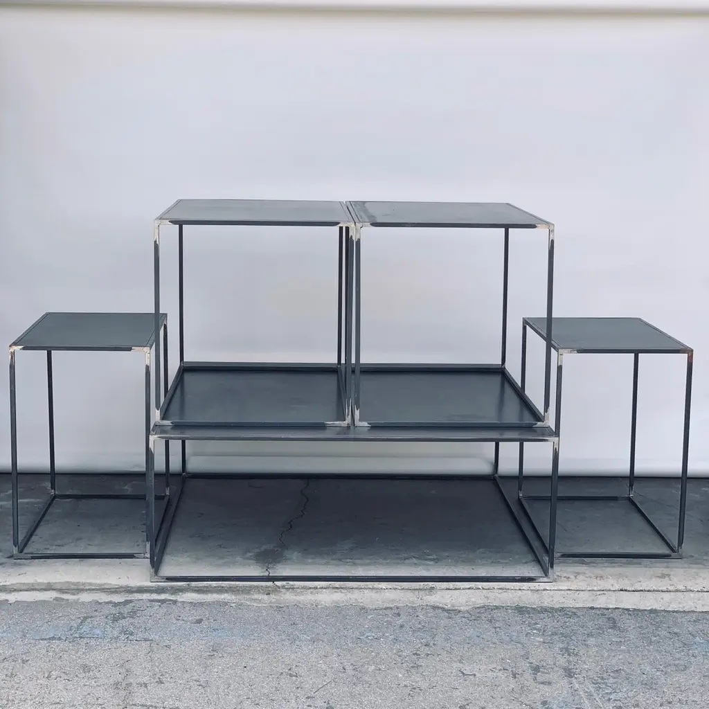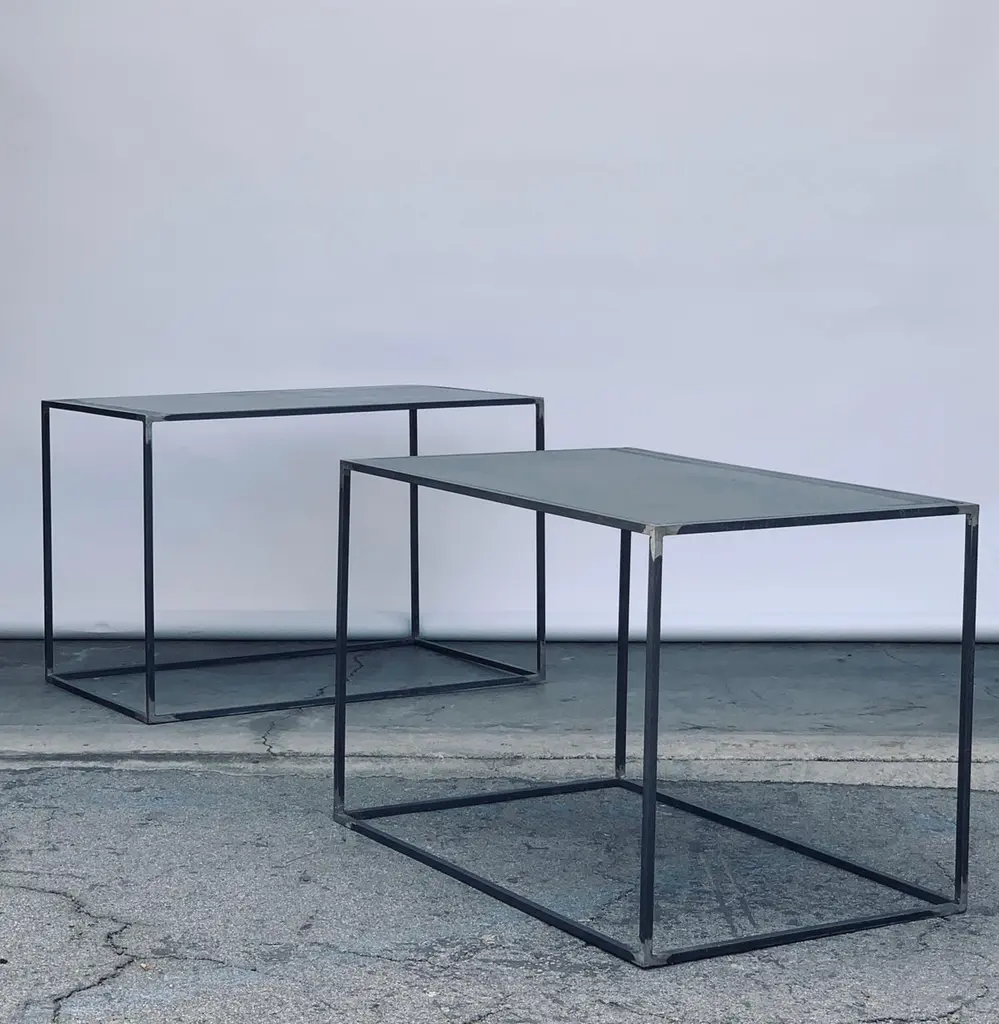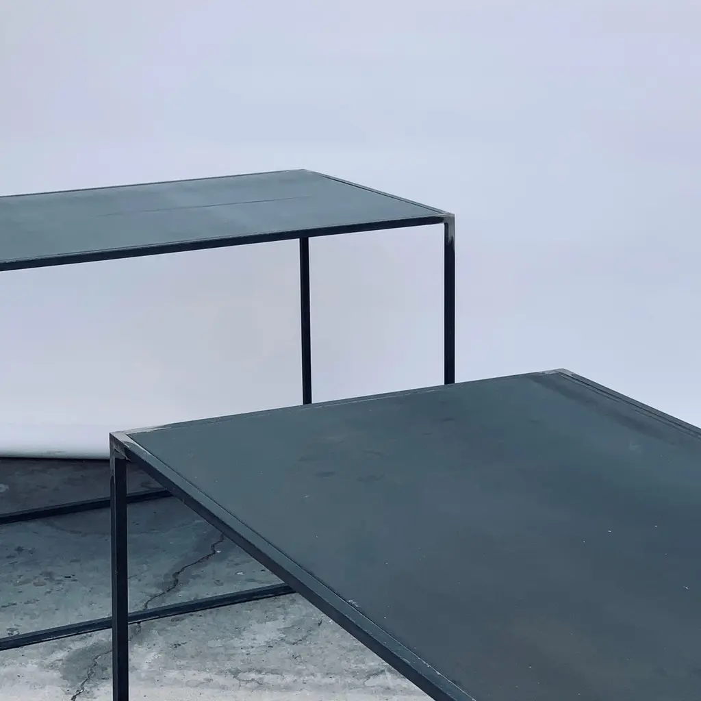 Complete Set Of 'Filiforme' Minimalist Patinated Steel Living Room Tables