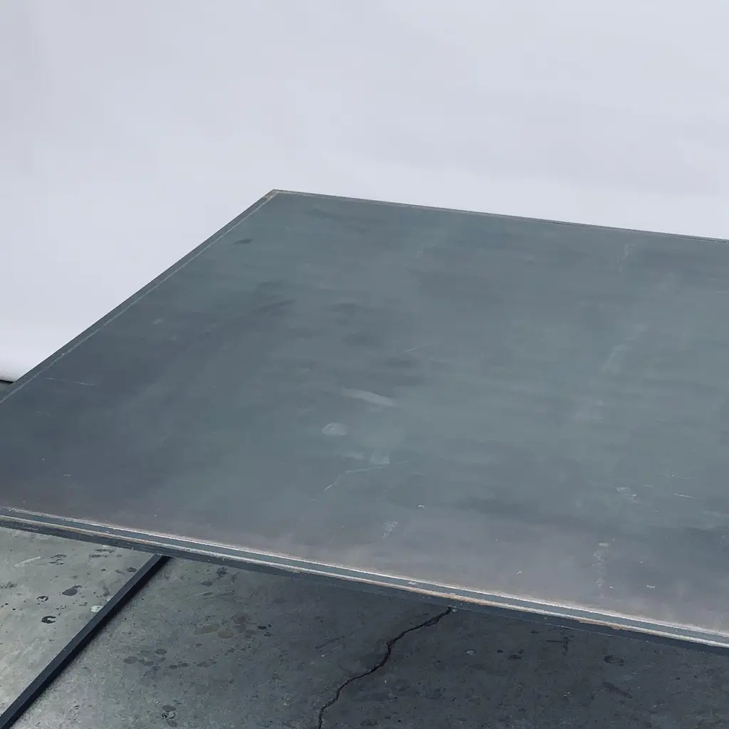 Complete set of 'Filiforme' coffee, side and occasional patinated steel plate tables by Design Frères.Measures: Coffee table 43 in. x 43 in. x 16 in. tallSide tables 33 in. x 21 in. x 22 in. tallOccasional tables 25 in. x 15 in. x 24 in. tall.