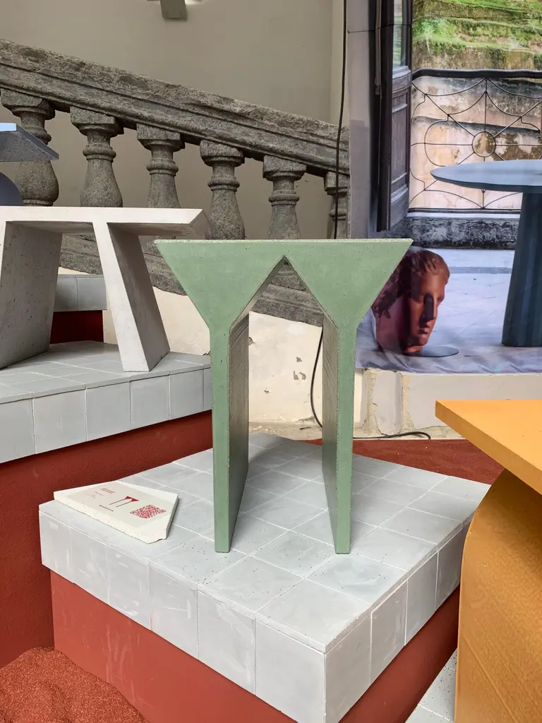 Concrete Side Table "G" Abecedario Collection Green Color By Forma&cemento