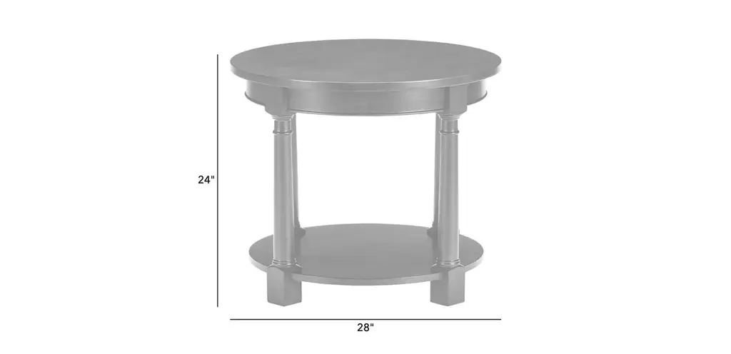 Handcrafted in our North American workshops and now available for fast delivery in select finishes. Connall's round frame includes a lower open shelf; neoclassical posts raise the elegance factor. Combines beautifully with any of our Quick Ship Connall coffee tables.