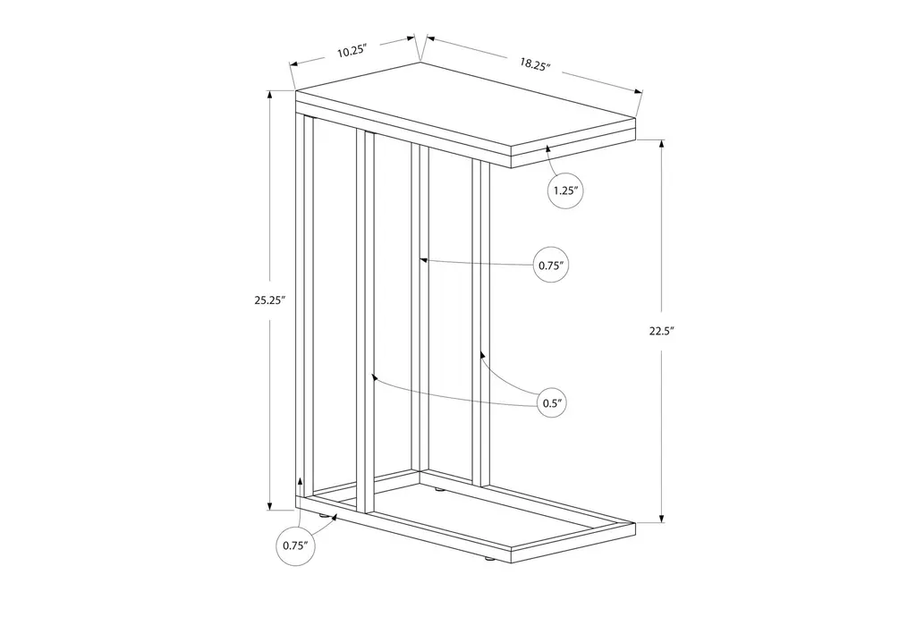 Bring a touch of modern elegance to your living space with the Contempo Modern Brown 10" C-Table Accent Table. This stylish piece features a dark brown and bronze metal design, perfect for any contemporary setting. Its versatile C shape allows it to slip easily under your sofa, chair, or bed, making it an ideal snack table or sofa side table. This design also serves as the perfect bedside table.