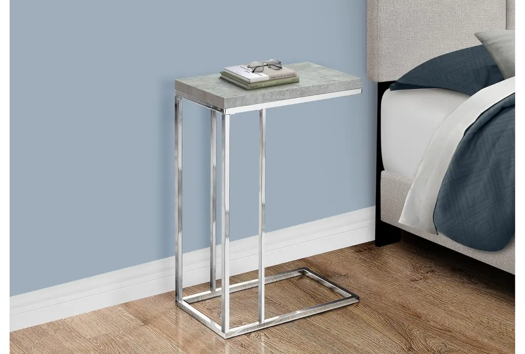 Bring a modern tone to your living room, office space, family room, or den with the stylish Contempo Modern Grey 10" C-Table Accent Table. This versatile piece can be conveniently used as a snack table or sofa side table. Featuring a trendy cement textured surface, this C-shaped side table slips easily under your sofa, chair, or bed and sits slightly off the ground to prevent damage to your floor. This design also serves as the perfect bedside table.