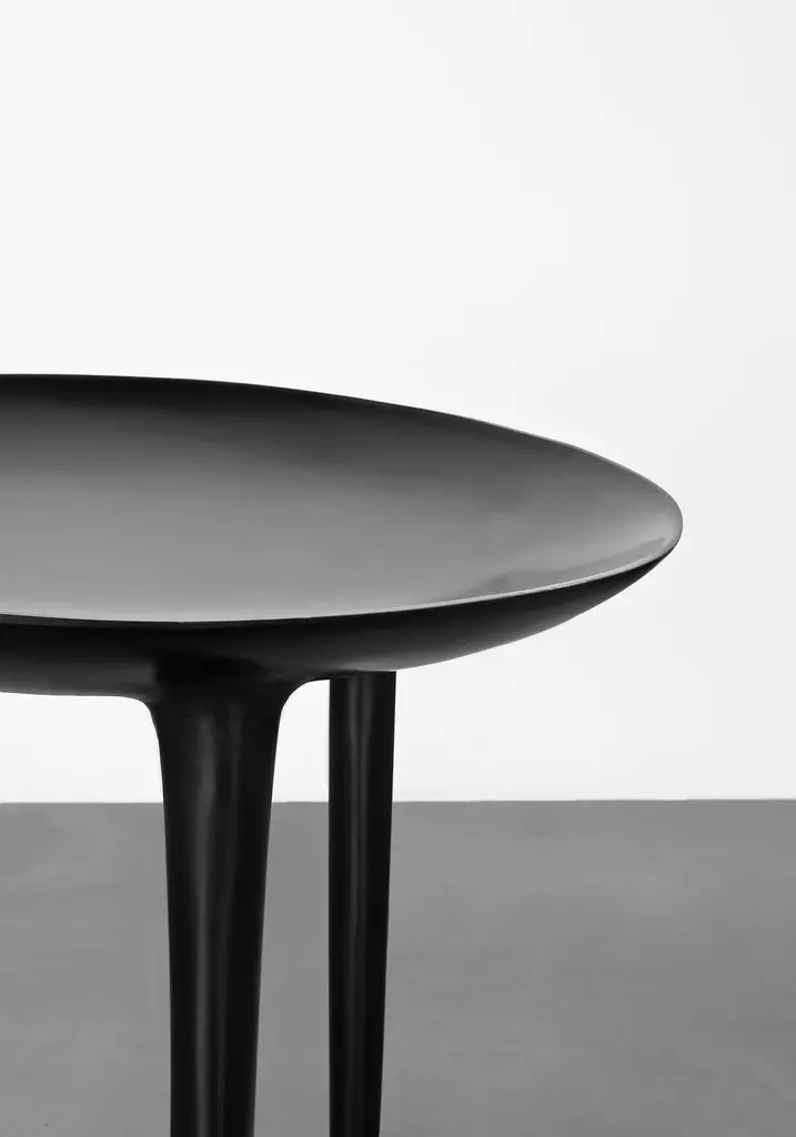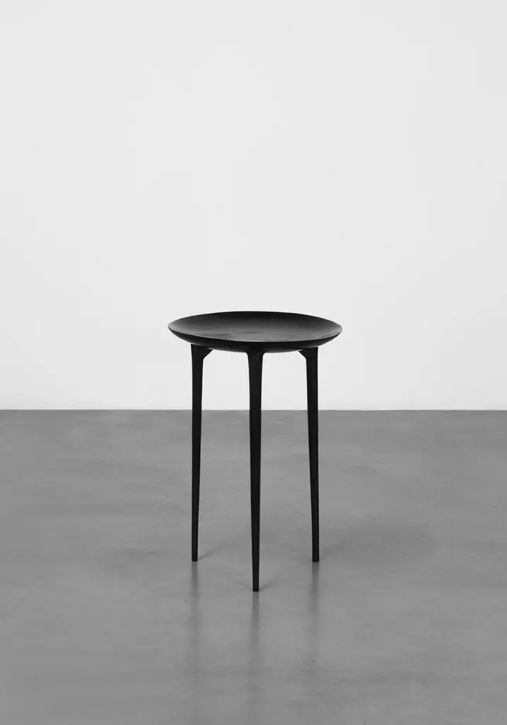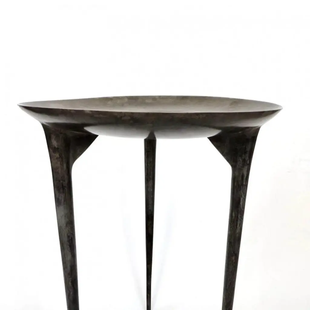 Contemporary bronze side table - Low Brazier by Rick Owens2007Dimensions: Dimensions: L 42 x W 42 x H 59 cmMaterials: BronzeWeight: 25 kgAvailable in black finish or Nitrate (Dark Brown) finish.Rick Owens is a California-born fashion and furniture has developed a unique style that he describes as “luxe minimalism.”Though his designs are simple and spare, Owens thrives on theatricality - producing wildly original runway shows featuring gender-fluid models of all ages and shapes. Inspired by his longtime partner and muse, Michele Lamy, clothes and furniture alike feature dark grays, blacks and browns. Like his frontier forebears, Owens finds his strongest influences in nature - his furniture and housewares have simple, organic shapes, and a few items even feature his distinctly 21st century take on antlers.Made by hand, in France.