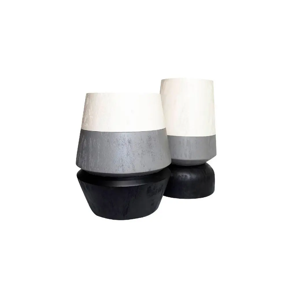 The capirucho side table and stool are inspired by a popular yet simple toy enjoyed for many generations by kids in Guatemala. The piece has a playful Silhouette turned with conacaste, and it can be accentuated with colorful bands creating a more fun look that represents the original capirucho toy.The Capirucho series is made with solid conacaste (Enterolobium cyclocarpum) Also known as parota wood. Similar to walnut in appearance.