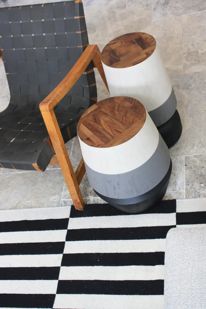 The capirucho side table and stool are inspired by a popular yet simple toy enjoyed for many generations by kids in Guatemala. The piece has a playful Silhouette turned with conacaste, and it can be accentuated with colorful bands creating a more fun look that represents the original capirucho toy.The capirucho series is made with solid conacaste (Enterolobium cyclocarpum) Also Known as Parota Wood. Similar to walnut in appearance. Samples are available upon request.