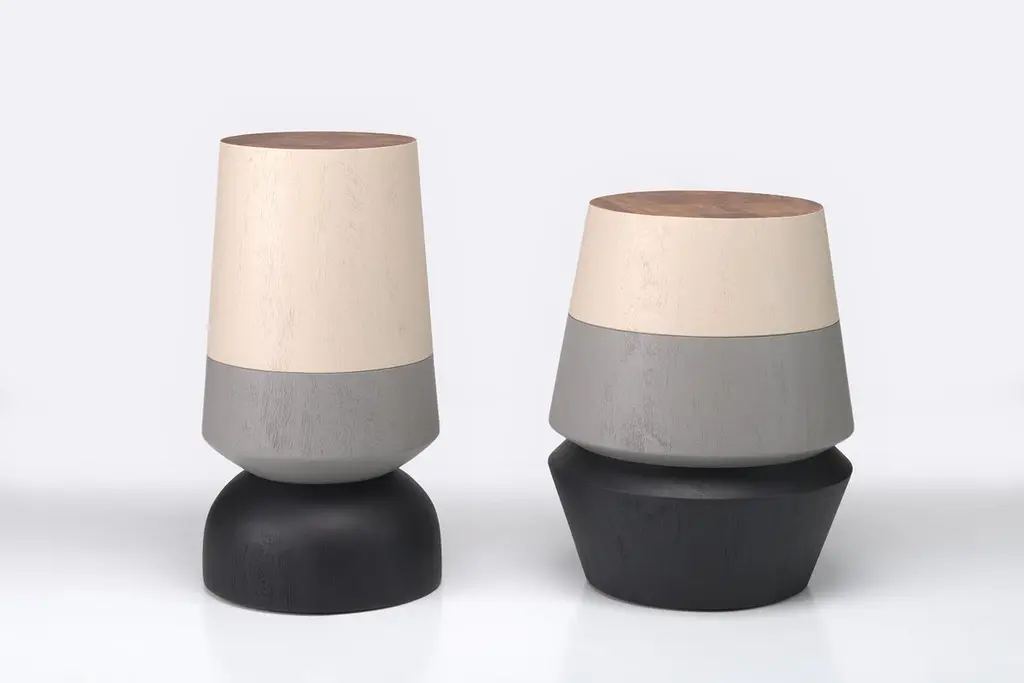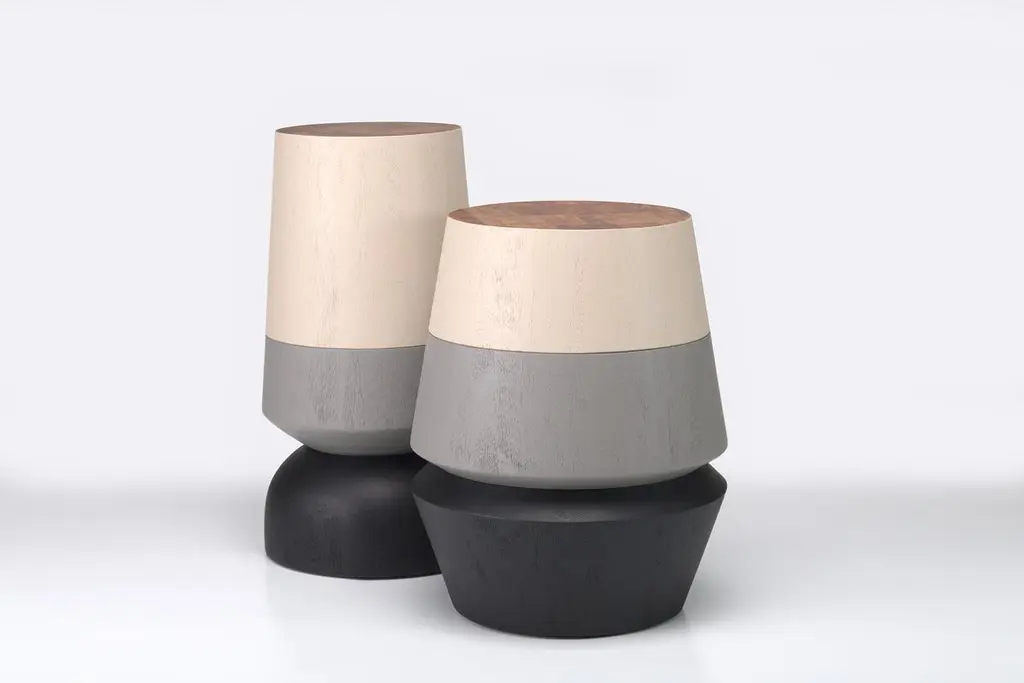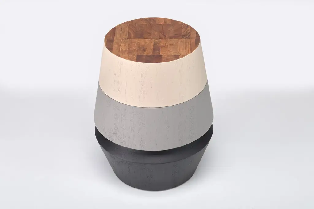 Contemporary Capirucho Turned Side Table, Wood And Tricolor Brushed By Labrica