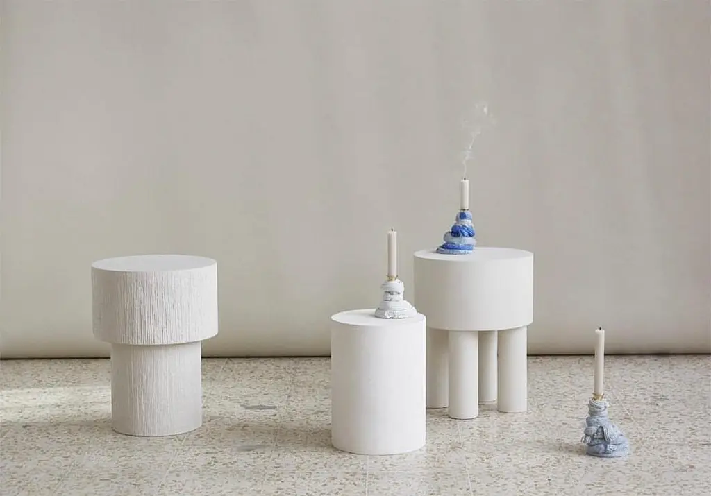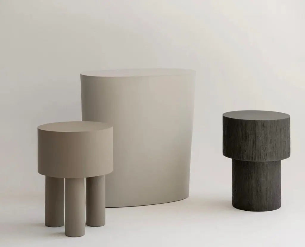 Contemporary Jesmonite Side Table - Pilotis Carved by Malgorzata Bany.Inspired by support columns that lift a building above ground or water. Each piece is formed using a mould made of paper, used only once, making each piece unique. Available in chalk, flint and clay colors.Design: Malgorzata BanyMaterial: Jesmonite stoneDimensions (in): 13.78 x H 18.11"Dimensions (cm): Diameter 35 x Height 46 cmMade by hand, in United Kingdom.Crate included in the price.