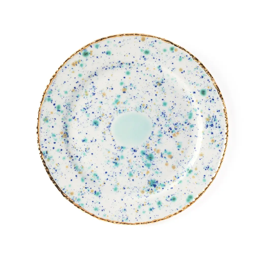 Handcrafted in Italy from the finest porcelain, this Blue Marble charger plate has an original golden crackled rim emphasizing the blue yellow and green decor and emerald center.Charger plate with rim, Craquelé Edge, Ø 31cmPiazza del Popolo, Blue Marble collectionHand painted porcelainHand painted 24-karat goldMade in ItalyFirst introduced at Milan Design Week 2018, the Piazza del Popolo collection is named after a Roman landmark, at the heart of Roman everyday life, and inspired by traditional, simple Italian artisanal pottery yet decorated in a personal and elegant key. Each Coralla Maiuri product is entirely hand decorated. Each is a work of art. While consistent, they are never identical. Slight variations of decor and color from one to another are not only normal, but to be expected as a sign of their uniqueness.For large quantities, production lead time to be confirmedEven if all our tableware products are suitable for dishwasher machines, for long term conservation we warmly recommend to favour non-aggressive soap and delicate washing.Due to the presence of real 24-karat gold, this item is not suitable for microwave.
