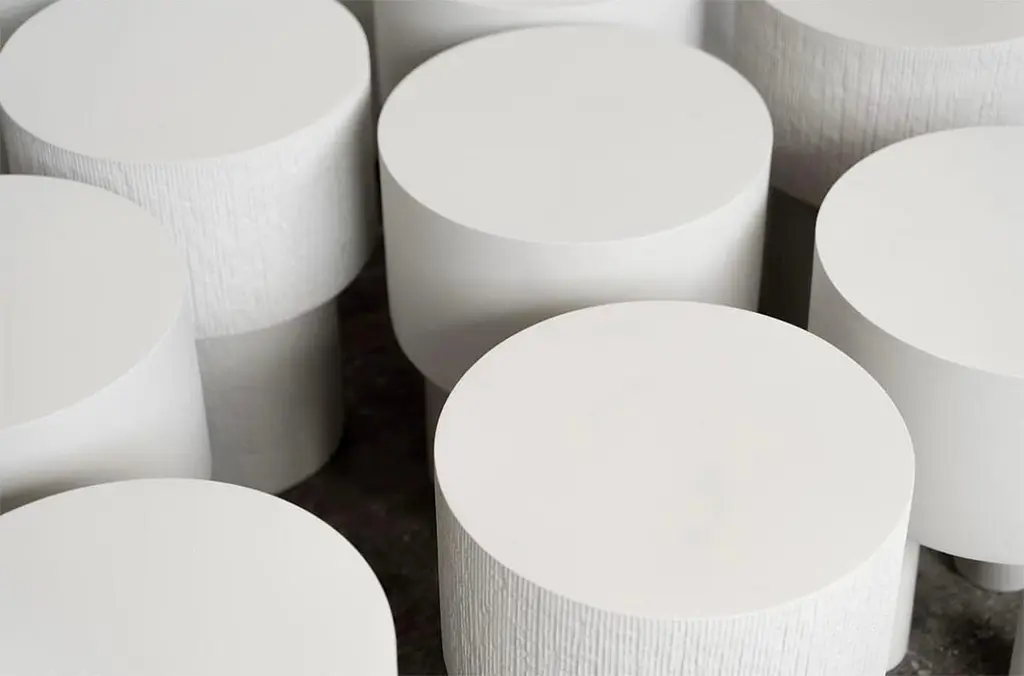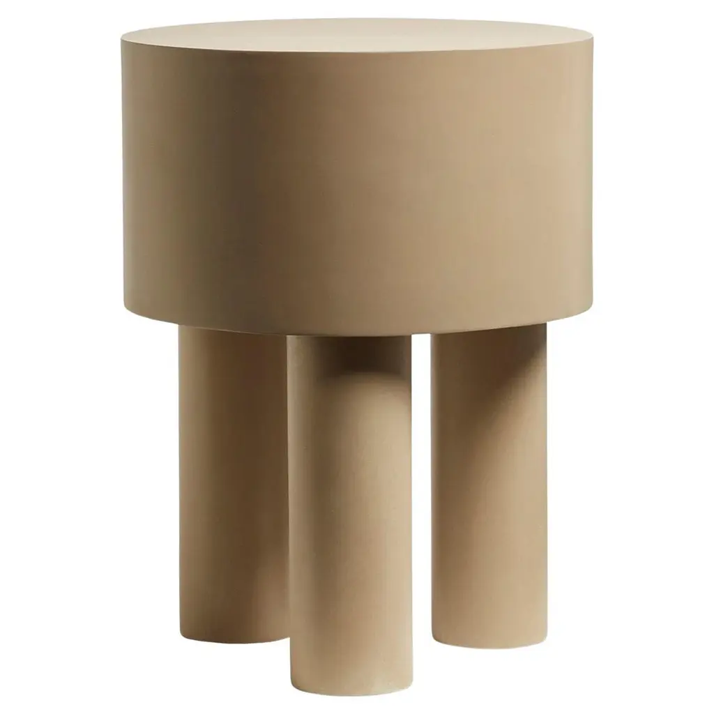 Contemporary Jesmonite side table - Pilotis by Malgorzata Bany.Inspired by support columns that lift a building above ground or water. Each piece is formed using a mould made of paper, used only once, making each piece unique. Available in chalk, flint and clay colors.Design: Malgorzata BanyMaterial: Jesmonite stoneDimensions (in): 13.78 x Height 18.11"Dimensions (cm): Diameter 35 x Height 46 cmMade by hand, in United Kingdom.Crate included in the price.