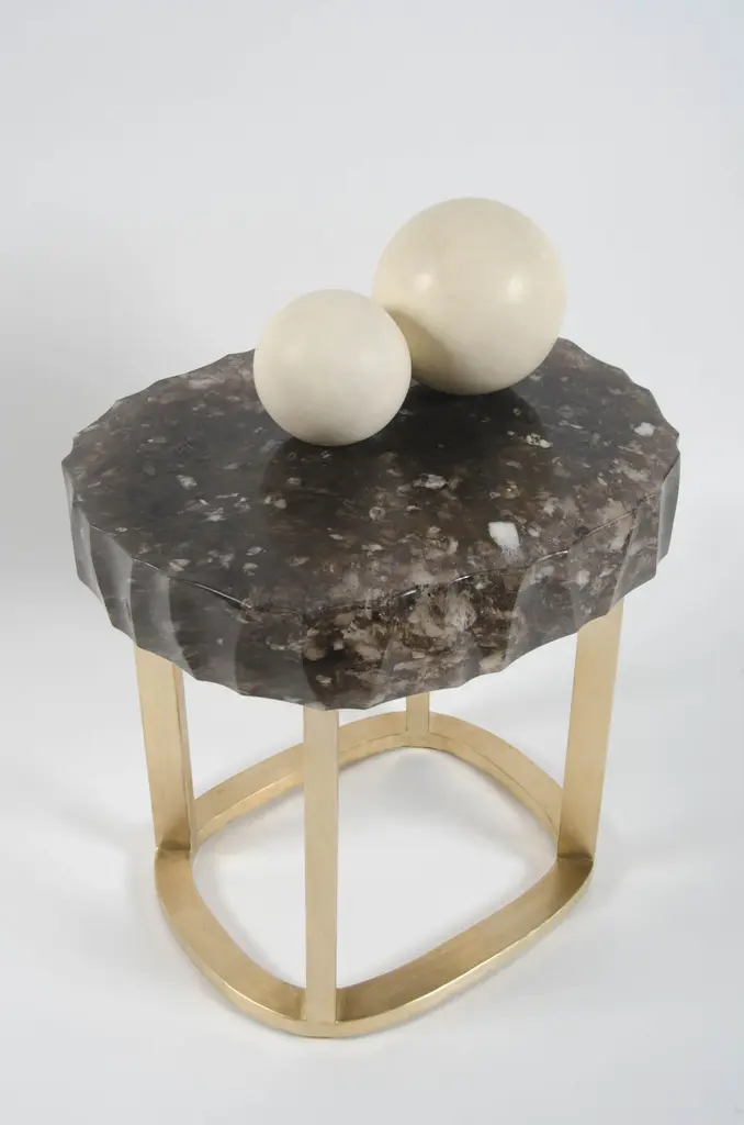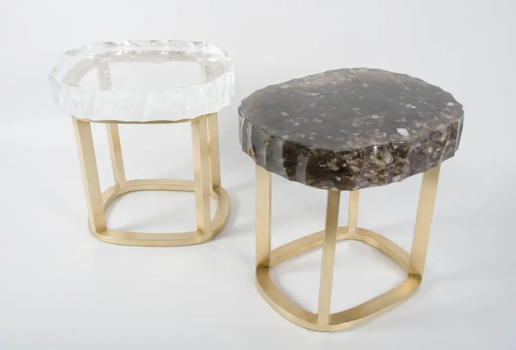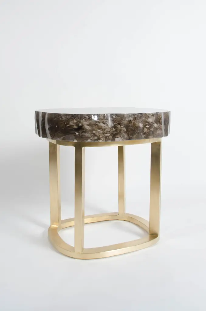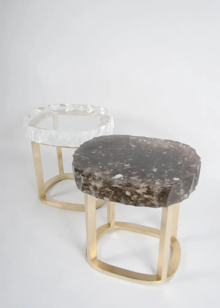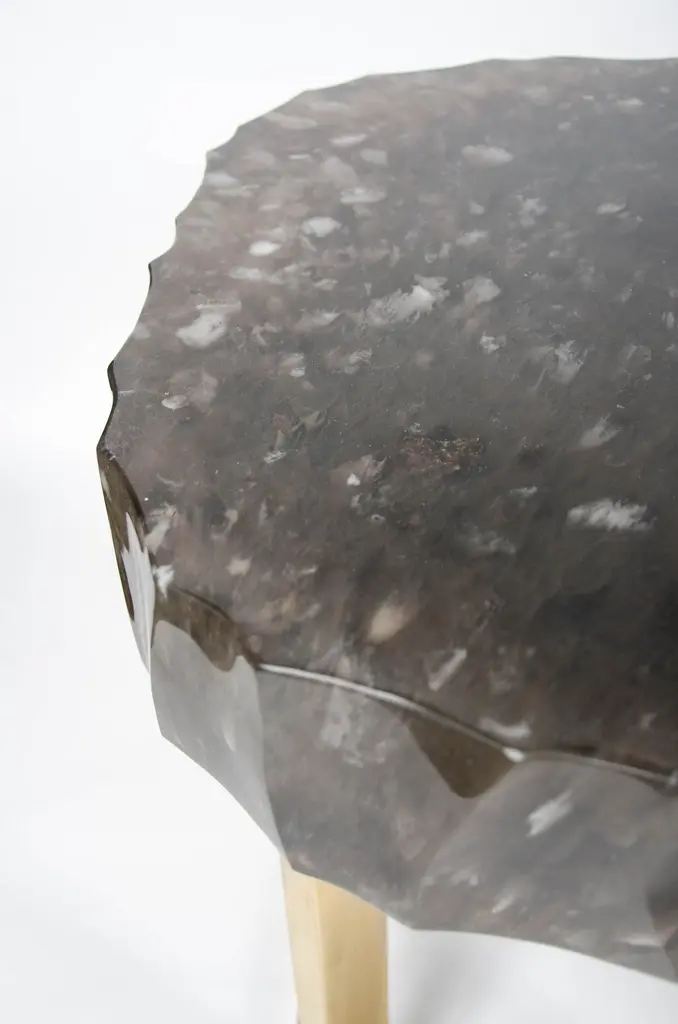 Contemporary Glacier Side Table In Smoke Crystal And Brass By Robert Kuo