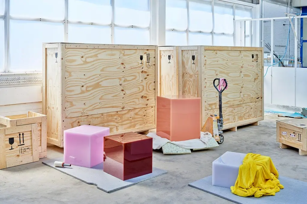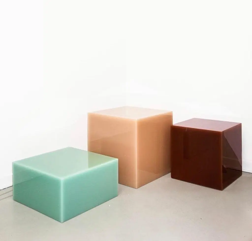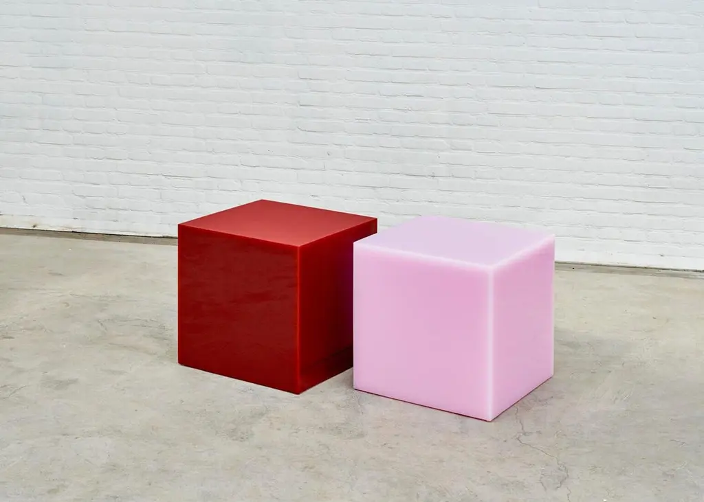 Seemingly solid objects with a magical glowing edge. The unique translucent and highly polished properties of the material give a magical effect to these multifunctional pieces.Color: Peach (pictured) Measures: 60 x 60 x 60 cmColours: Raspberry, Candy Floss, Cobalt, Ice, Citron, Peach, Mint, Tomato, Bubblegum, Marshmallow. Custom colours available on requestDimension:Large: 60 x 60 x 60 cmMedium: 50 x 50 x 50 cmLow: 30 x 60 x 60 cmMaterial: High polished polyester resin, anti-slip feet.