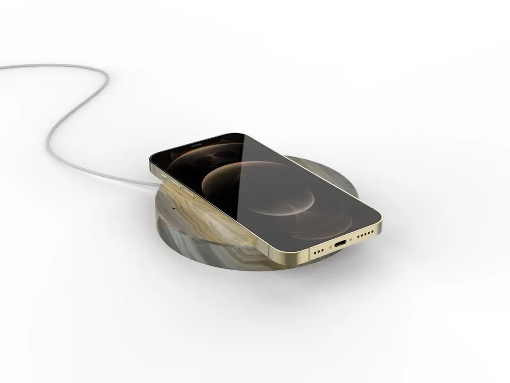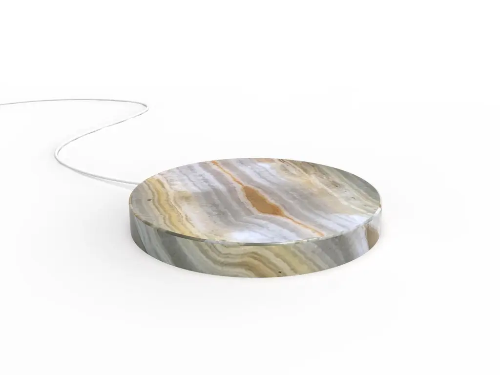 A Onix base,that quickly charge your phone, with a touch of magic. A circle, a stone, realized with the care that Onix requires.A powerful wireless charging technology ensures an efficient and reliable power delivery.The result is a magical object, with a natural feel,a piece of art that wonderfully fits on any table or bedside table,or everywhere you imagine.Designed and manufactured in Italy, 100% Italian Onix, 0% plastics.- 15w power supply included in the box.- Integrated cable: 90cm (3ft)- Base diameter: Ø 12cm (4,72in) Compatible with all Qi-enabled devices.iPhone 13 / 13 Pro / 13 Pro Max / 13 mini and pevious models;Samsung Galaxy S21 / S21 Ultra / S21 Ultra 5G and previous models;etc...(all other brands)
