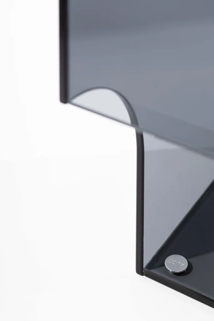 Contemporary Minimalist Arch Side Table, Dark Grey Glass, Belgian Design