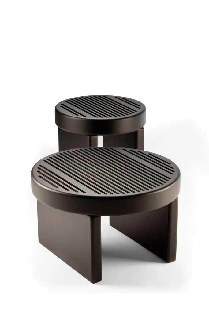 About Rillo Side Tables:Rillo is a solid wood side table, softened by its straight lines sliced top. It has pure shapes and flowing surfaces.It come in two heights, multiplying its possible uses, such as a complement to the sofas or to armchairs.DIMENSIONSRillos BigØ 60 cm 23,6″H 35 cm 14″Rillos HighØ 42 cm 17″H 45 cm 18″PRODUCT FEATURESwalnut wood.PRODUCT OPTIONSAvailable in all COLLECTOR´s wood swatches.Available in Lacquered RAL colors, in matte or gloss.About COLLECTORThe Collector brand was born and Portugal and aims to be part of daily life by fusing furniture to home routines and lifestyles. The company designs its pieces with the intention to embrace diverse styles and to blend in inside any contemporary setting.A wide range of product typologies are designed to work in diverse layers of importance. The result is a clean-lined furnishing collection that can easily be customised to work specifically and according to each unique need, reflecting traditional methods of furniture manufacturing with accurate industrial production methods. Collector strives to achieve the best quality possible by selecting the best materials and by the constant development of production processes and manufacturing partnerships.For more information please visit our website collectorgroup(.)pt