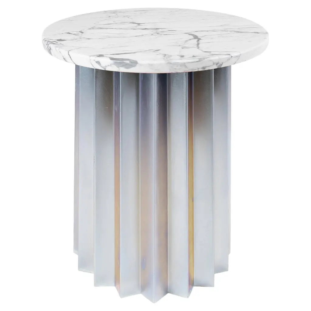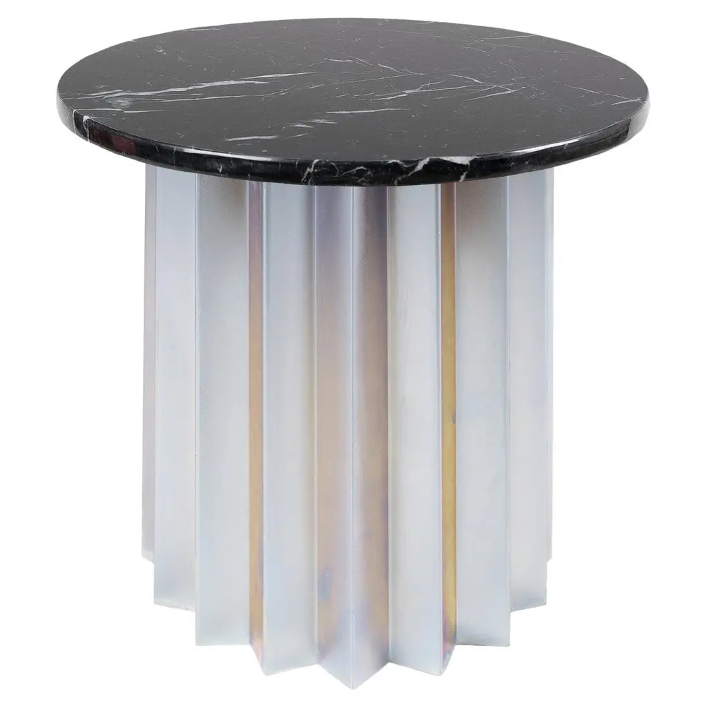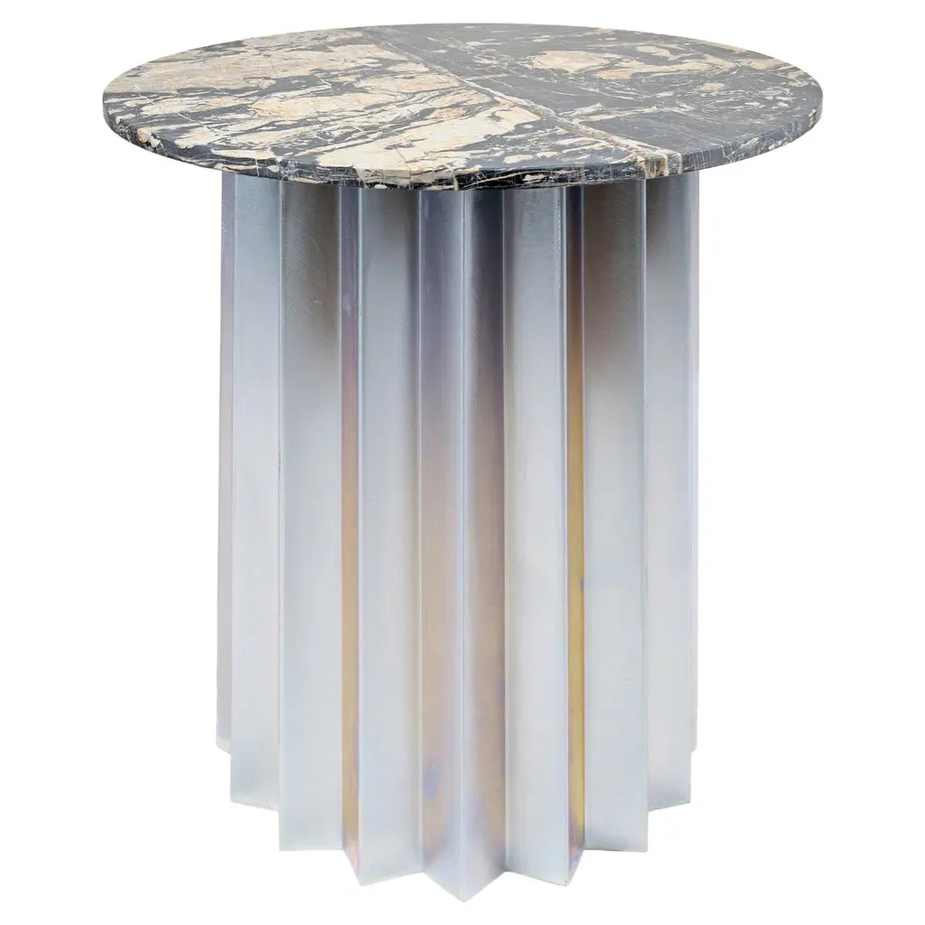 Volume is a collection of dining and side tables designed by DAY Studio in their unique simple and playful language. The powder coated metal base is completed with a table top selected from a distinguished choice of material and finish options.An AVLU staple with its zigzag fold metal pedestals in different color and sizes, Volume and our co-founder Yesim Eroktem has been featured in Phaidon’s Woman Made book amongst 200 most important women designers of the Century.Volume tables are produced upon order in marble, wood, and Avlu trademark terrazzo table tops that are custom made with unique brass inlays.