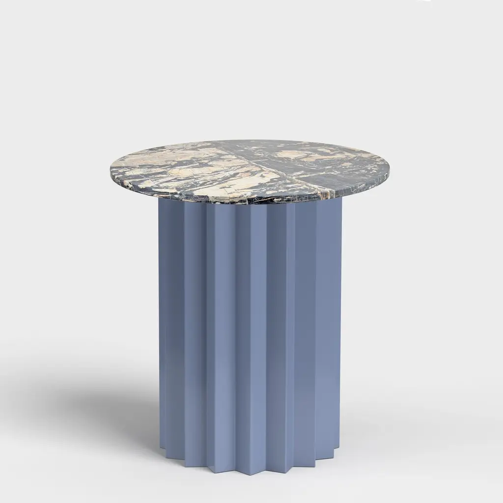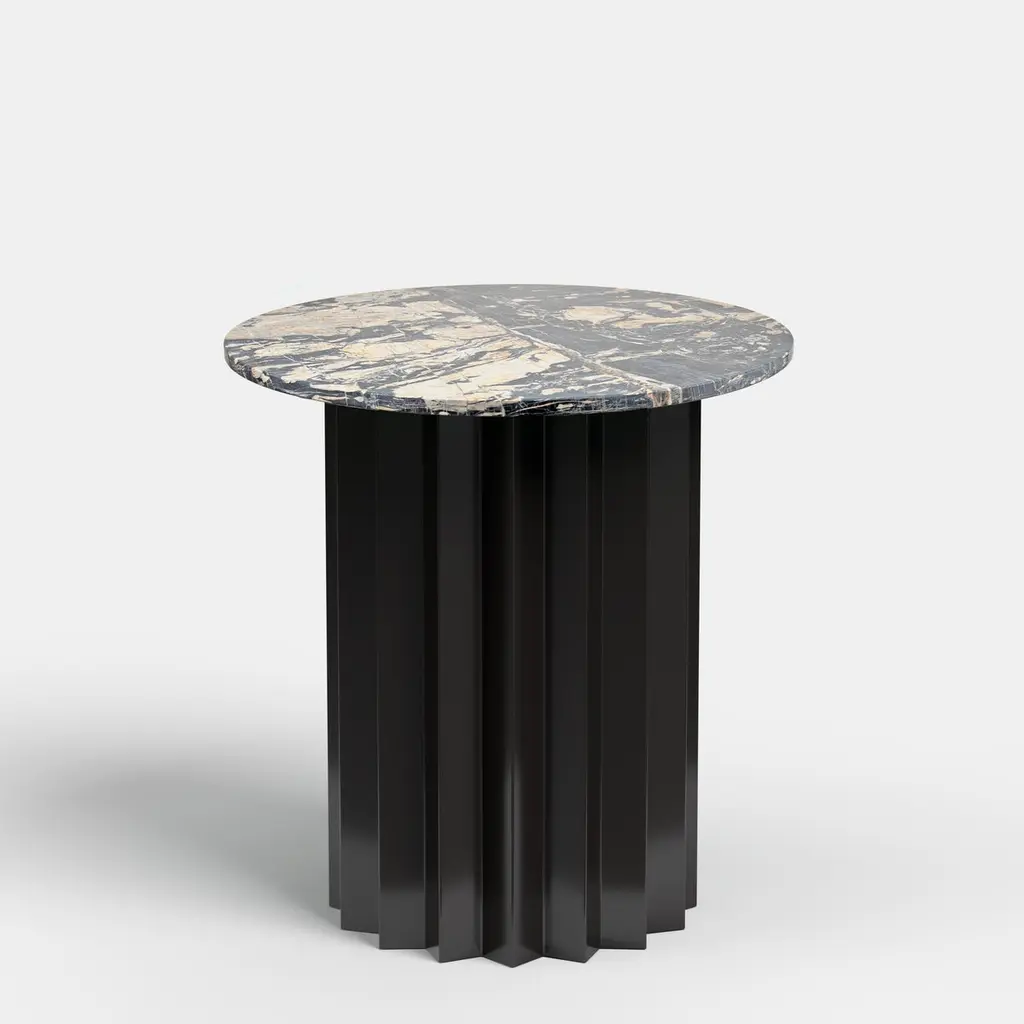 Contemporary Modern, Volume High Side Table, Metal Base & Neo Picasso Marble Top