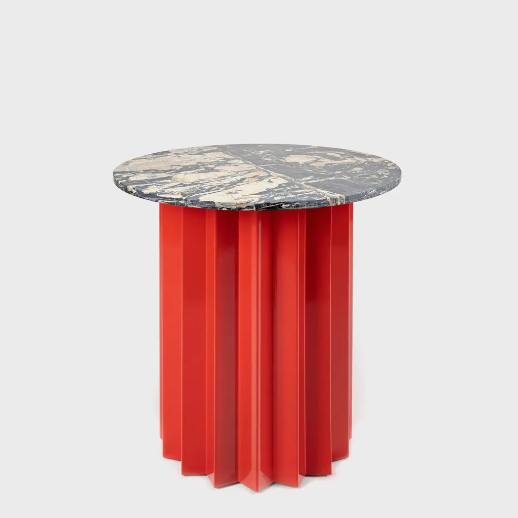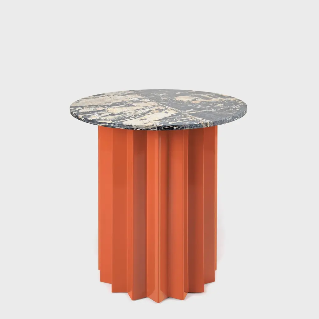 Volume is a collection of dining and side tables designed by DAY Studio in their unique simple and playful language. The powder coated metal base is completed with a table top selected from a distinguished choice of material and finish options.An AVLU staple with its zigzag fold metal pedestals in different color and sizes, Volume and our co-founder Yesim Eroktem has been featured in Phaidon’s Woman Made book amongst 200 most important women designers of the Century.Volume tables are produced upon order in marble, wood, and Avlu trademark terrazzo table tops that are custom made with unique brass inlays.