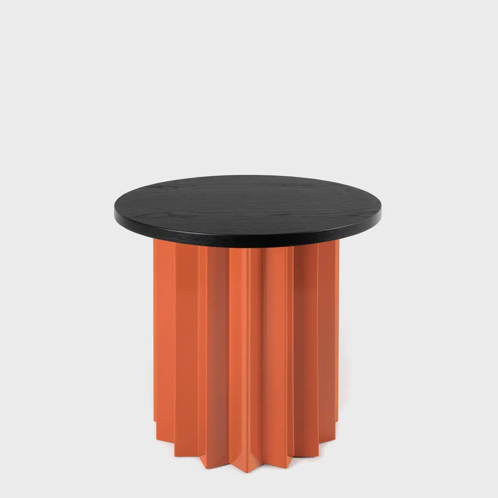 Volume is a collection of dining and side tables designed by DAY Studio in their unique simple and playful language. The powder coated metal base is completed with a table top selected from a distinguished choice of material and finish options.An AVLU staple with its zigzag fold metal pedestals in different color and sizes, Volume and our co-founder Yesim Eroktem has been featured in Phaidon’s Woman Made book amongst 200 most important women designers of the Century.Volume tables are produced upon order in marble, wood, and Avlu trademark terrazzo table tops that are custom made with unique brass inlays.