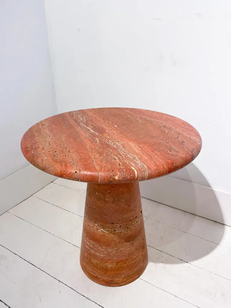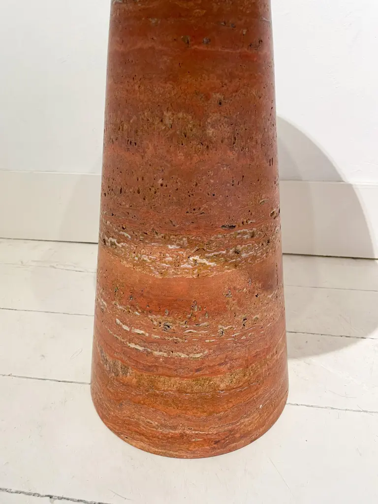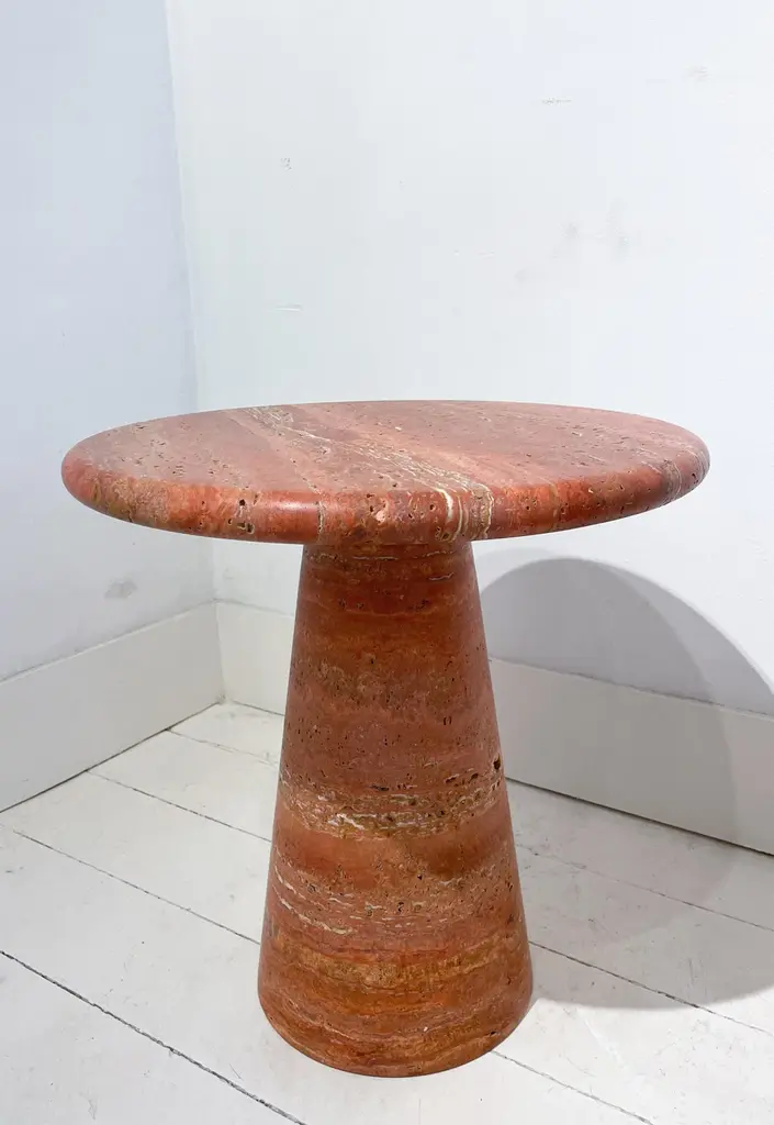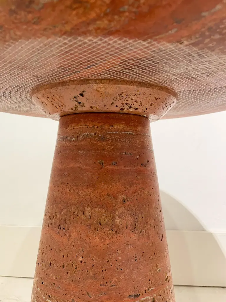 Contemporary Pair Of Red Travertine Side Tables, Italy