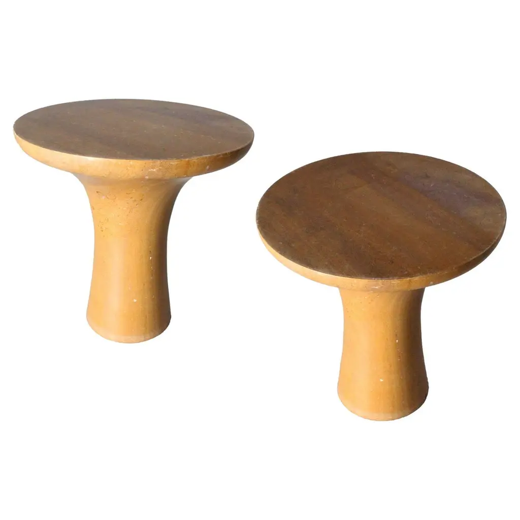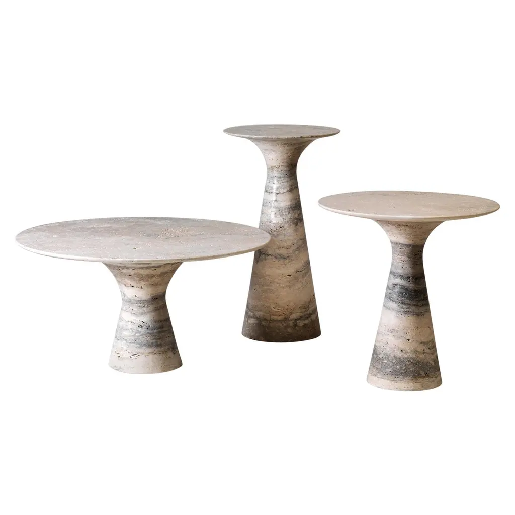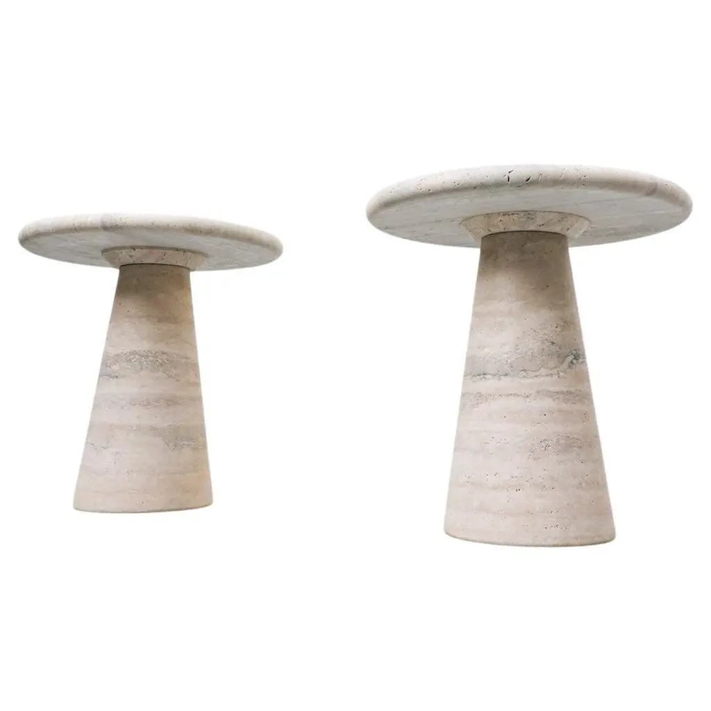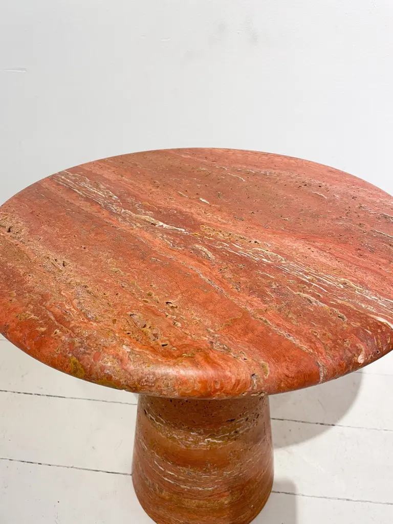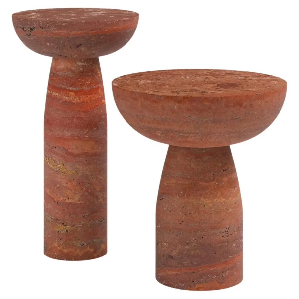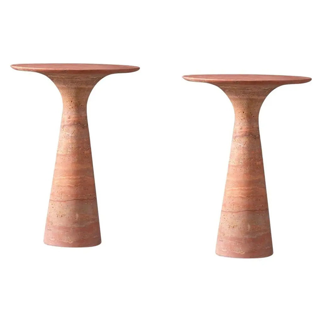 Contemporary Pair of Red Travertine Side Tables, Italy.