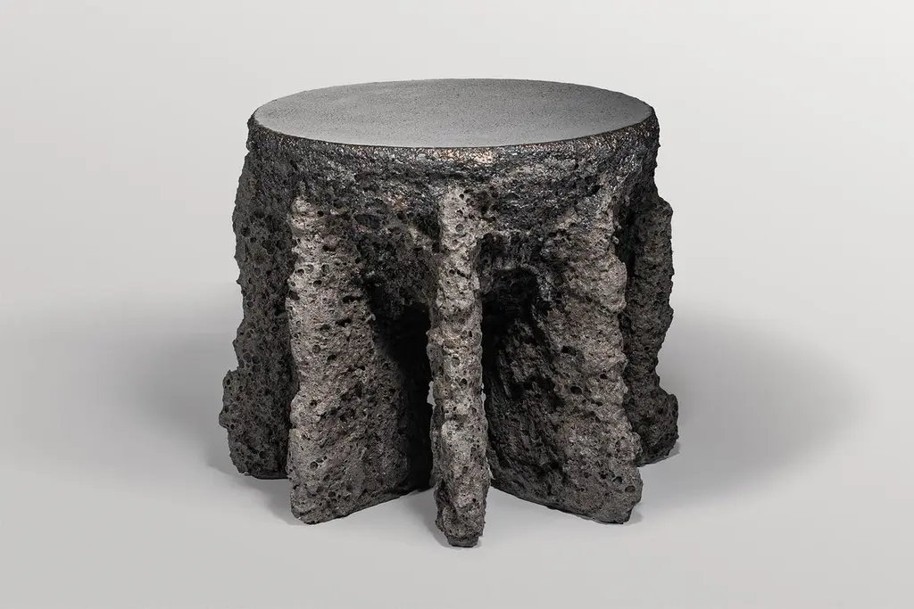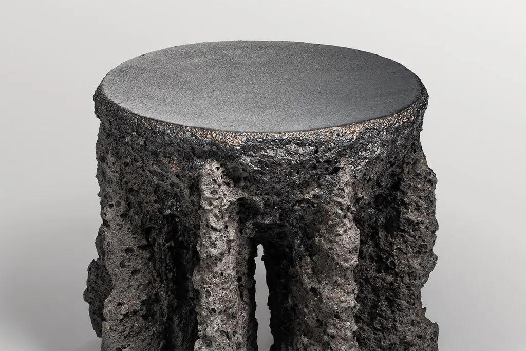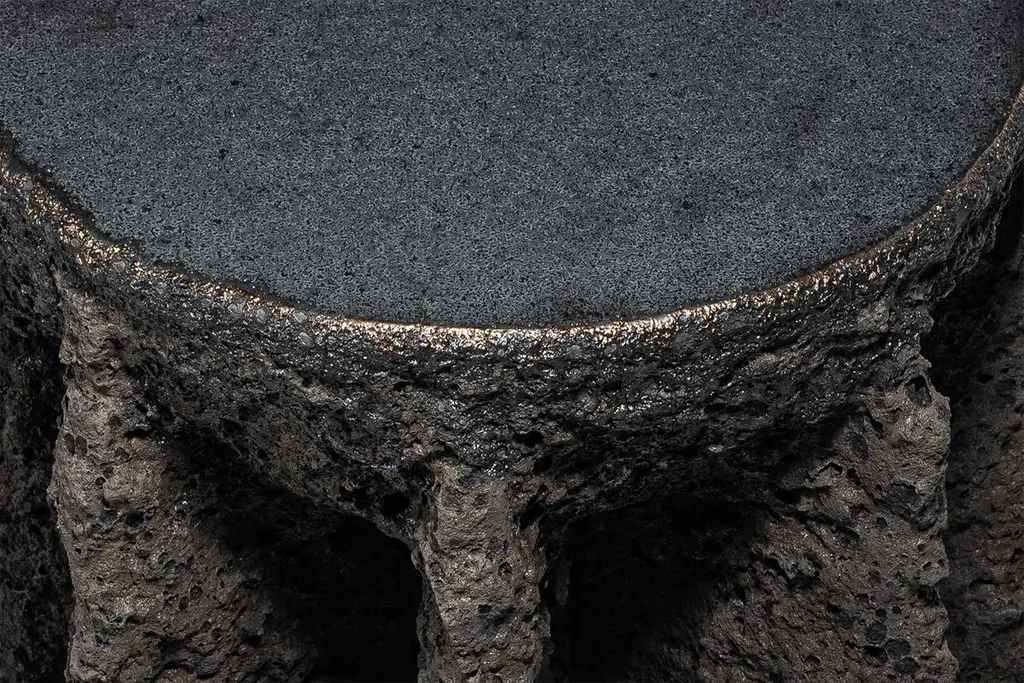 Contemporary Rough Form Dark Grey Ceramic High Side Table By Niclas Wolf